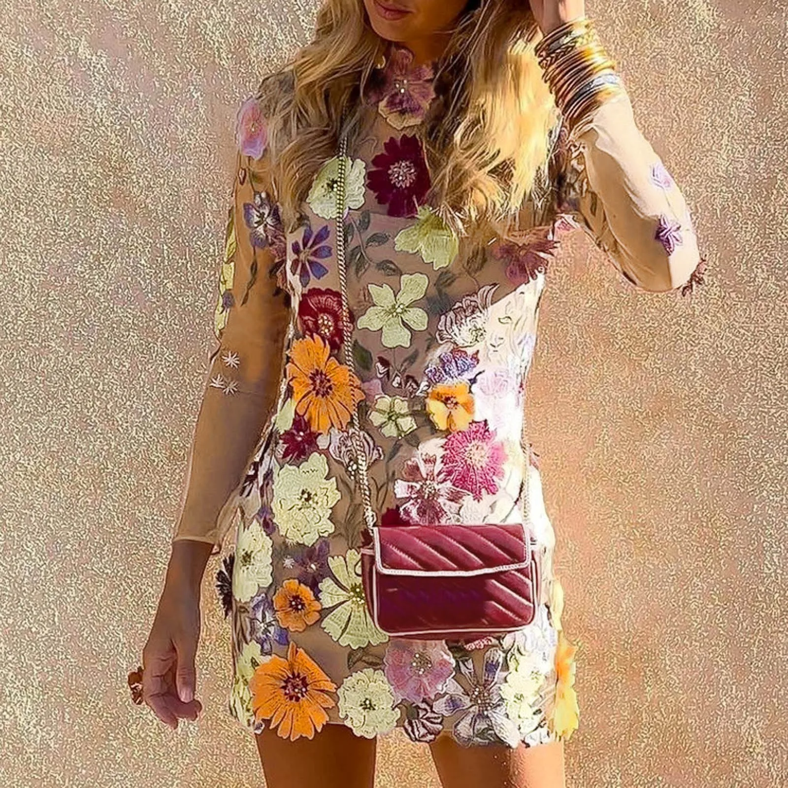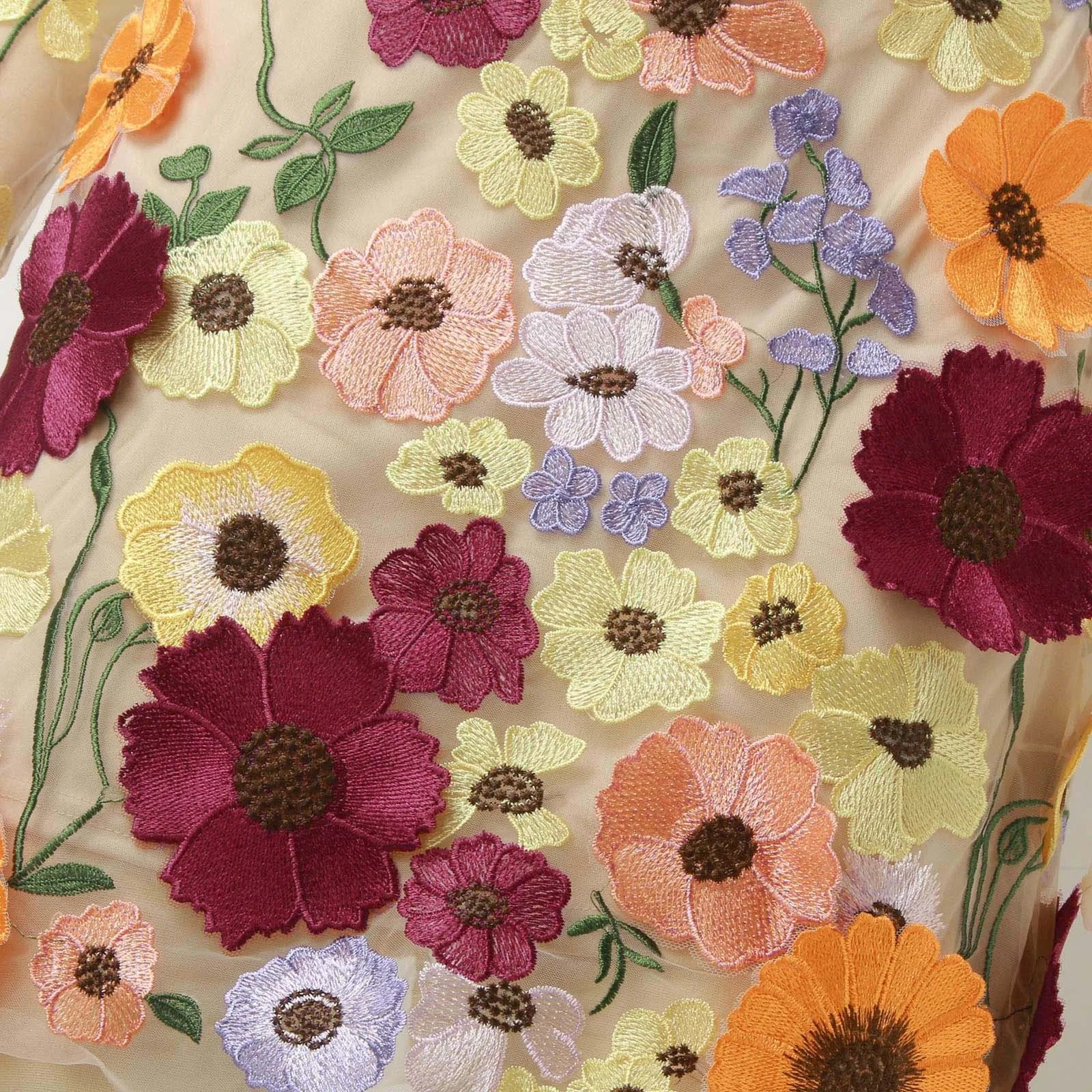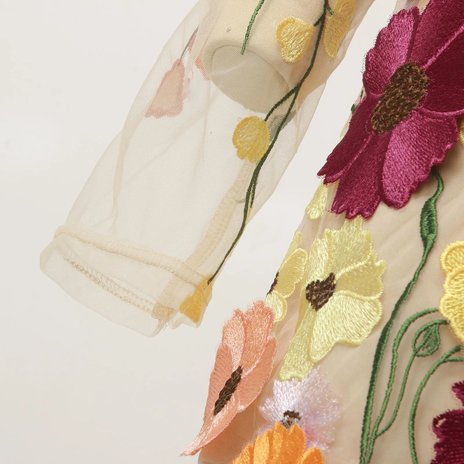 Women Summer Dresses 3D Floral Embroidery Sheer Mesh Lace Party Cocktail Dress
