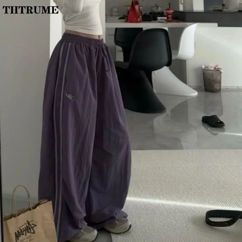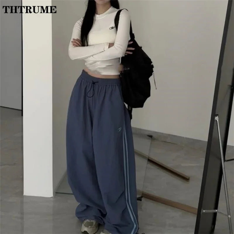 Oversized Hip Hop Baggy Pants Fashion Women Striped Pocket Elastic High Waist Cargo Pant Streetwear Sweatpant Loose New Trousers