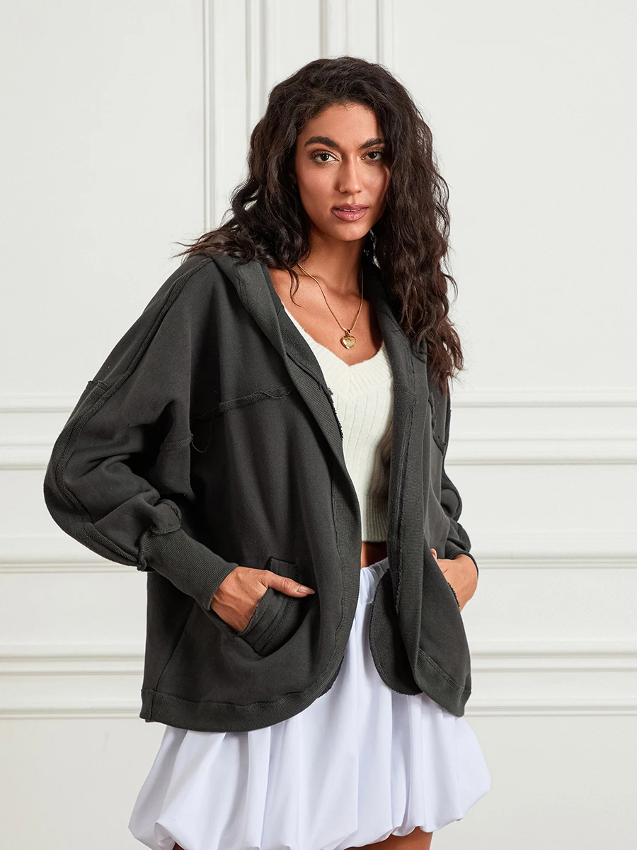 Oversized Hoodies Plain Color Long Sleeve Open Front Hooded Sweatshirts