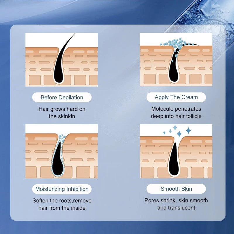 6.Rinse the hair removal area with water immediately and apply other maintenance products after drying.