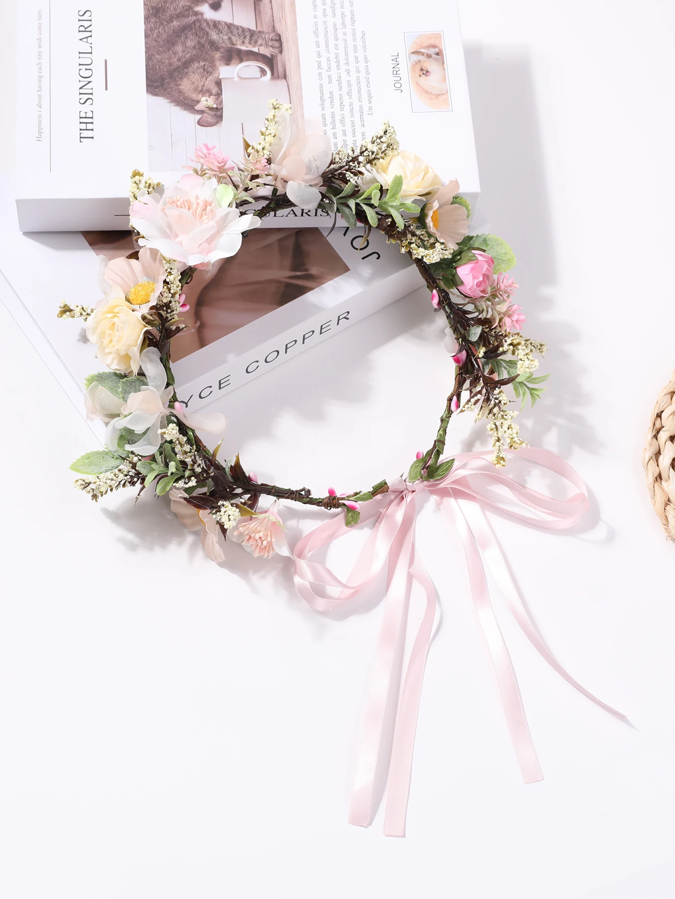 pastoral small fresh flower wreath hair hoop fairy rose flower flower headdress, retro antique style flower