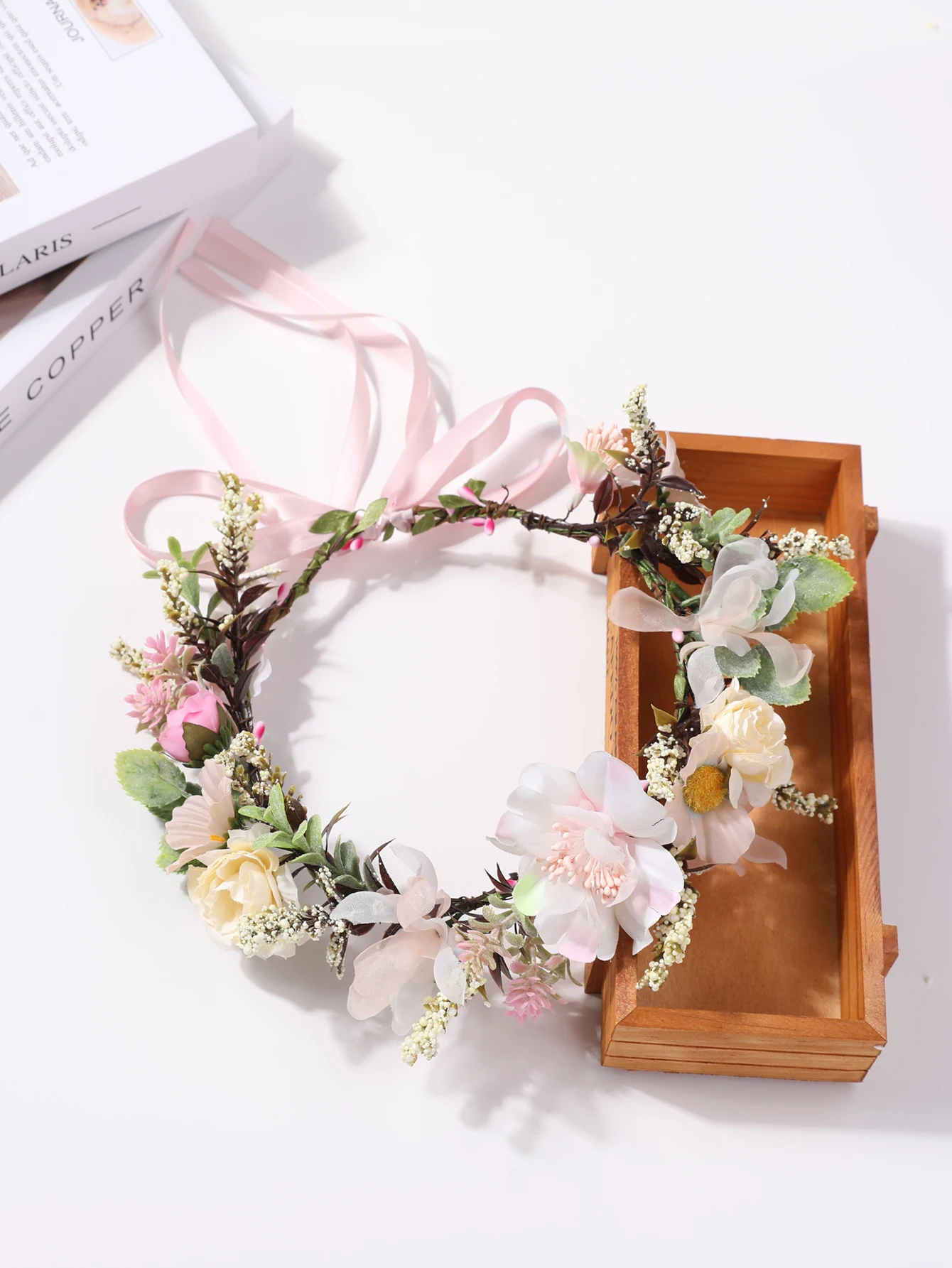 Add a touch of vintage charm with this Pastoral Small Fresh Flower Wreath Hair Hoop. Crafted with delicate polyester flowers, this fairy-inspired flower headband features a retro antique style—perfect for festivals, weddings, or adding a whimsical touch to any look.