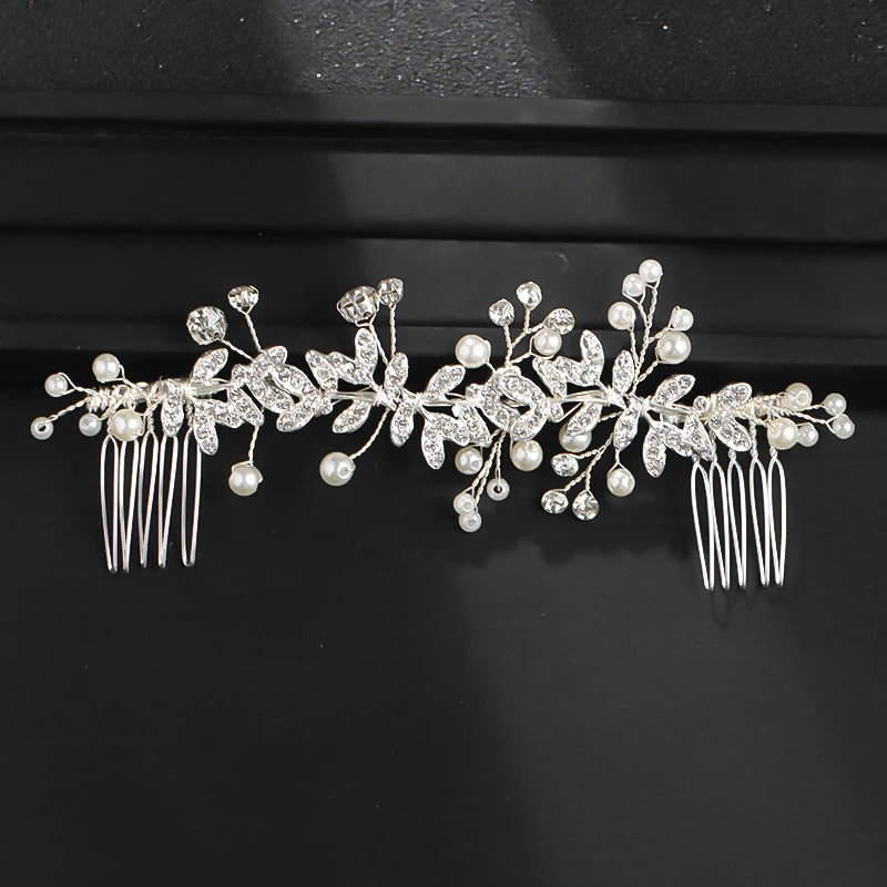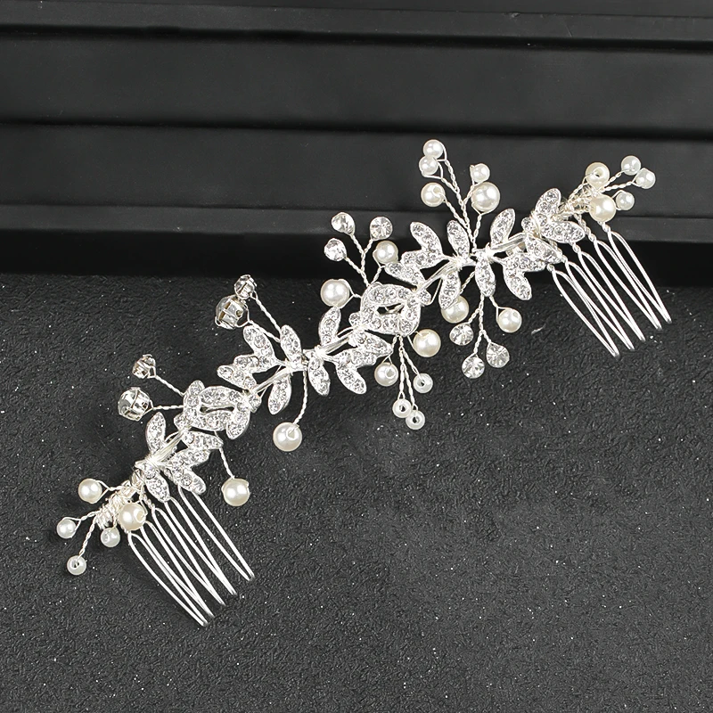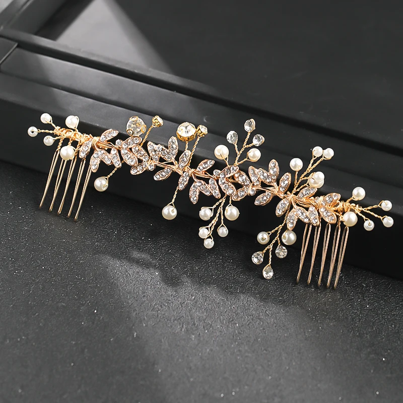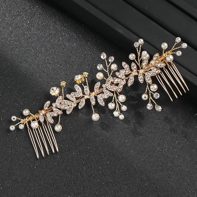 Pearl Leaf Crystal Hair Comb Hairpin Headband Tiara For Women Bride Queen Party Wedding Bridal Hair Accessories Jewelry