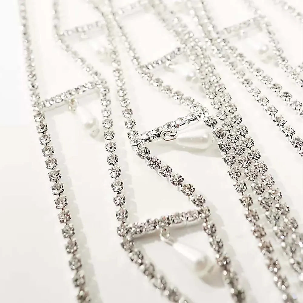 Pearl Mesh Chest Chain Jewelry Design Rhinestone Lingerie Nightwear