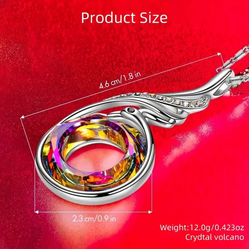 This Phoenix Pendant Necklace features a stunning design crafted from crystal and is made of iron alloy. With a fashionable and bold style, this necklace symbolizes rebirth and transformation, making it a meaningful piece to wear. The pendant represents the mythical phoenix, adding a unique flair to any outfit. Perfect for those who want to make a statement.