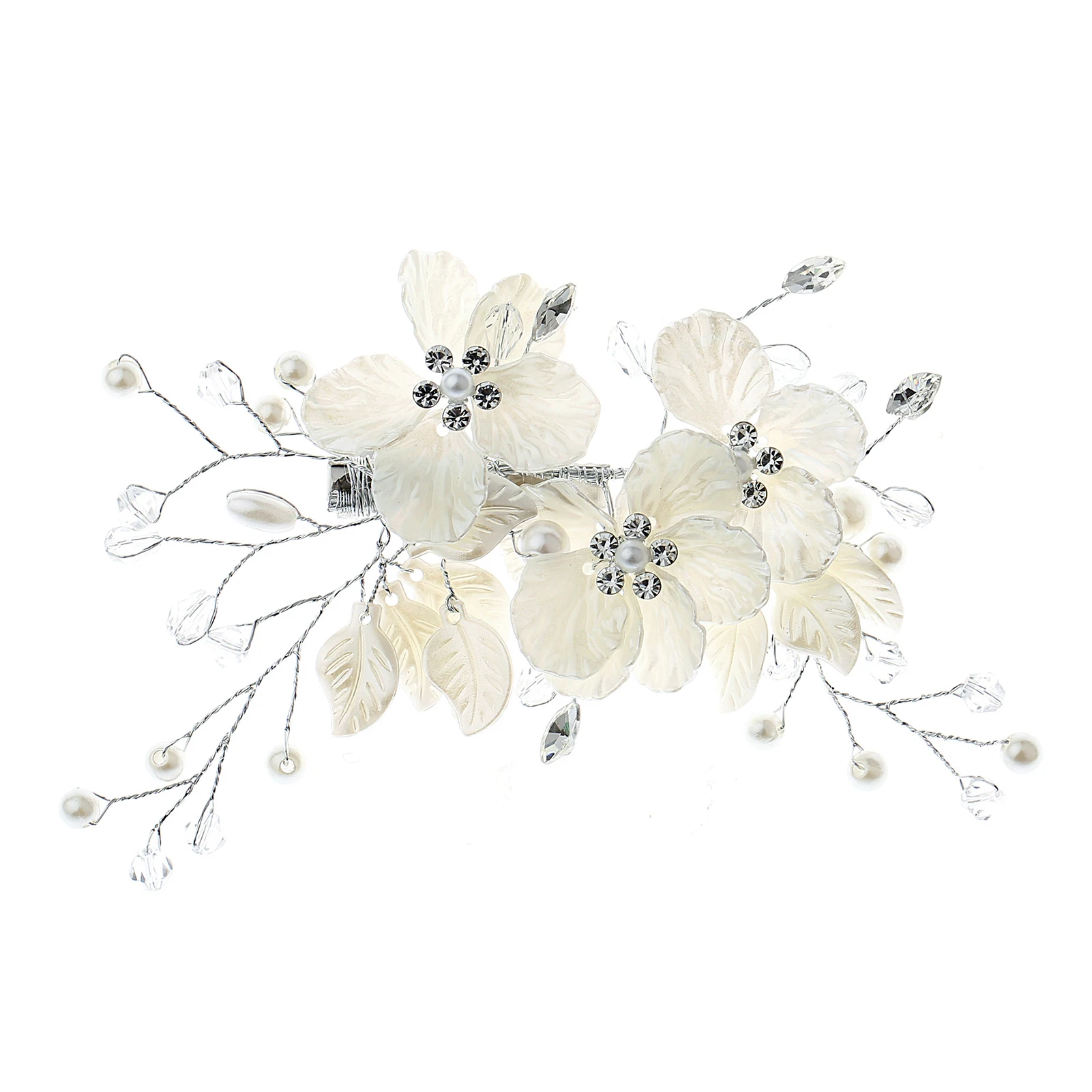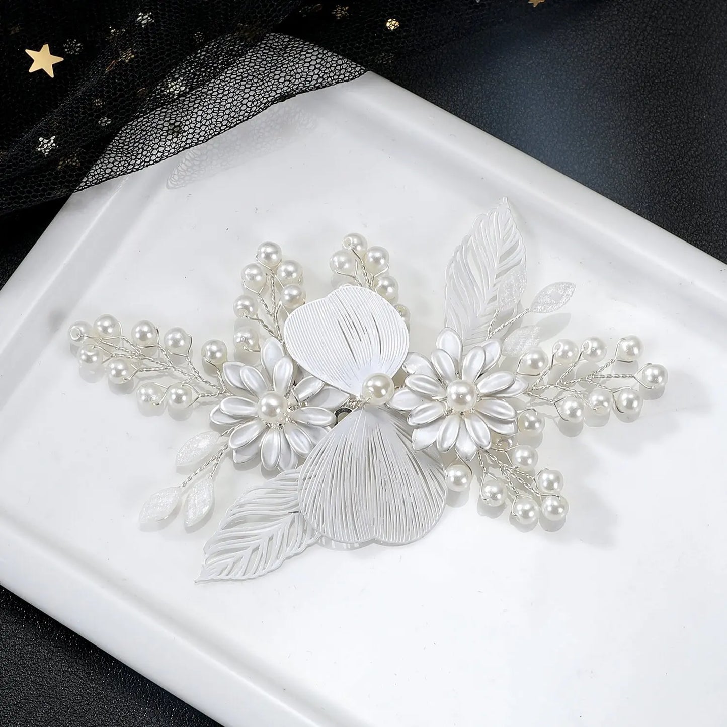 Add a soft, floral touch to your look with these handmade flower hair clips, featuring elegant pearls and available in pink, white, and blue. Crafted from alloy and plastic, these floral hairpins are perfect for bridesmaids, weddings, or any special occasion, offering both charm and functionality for a stylish, elegant hair accessory.