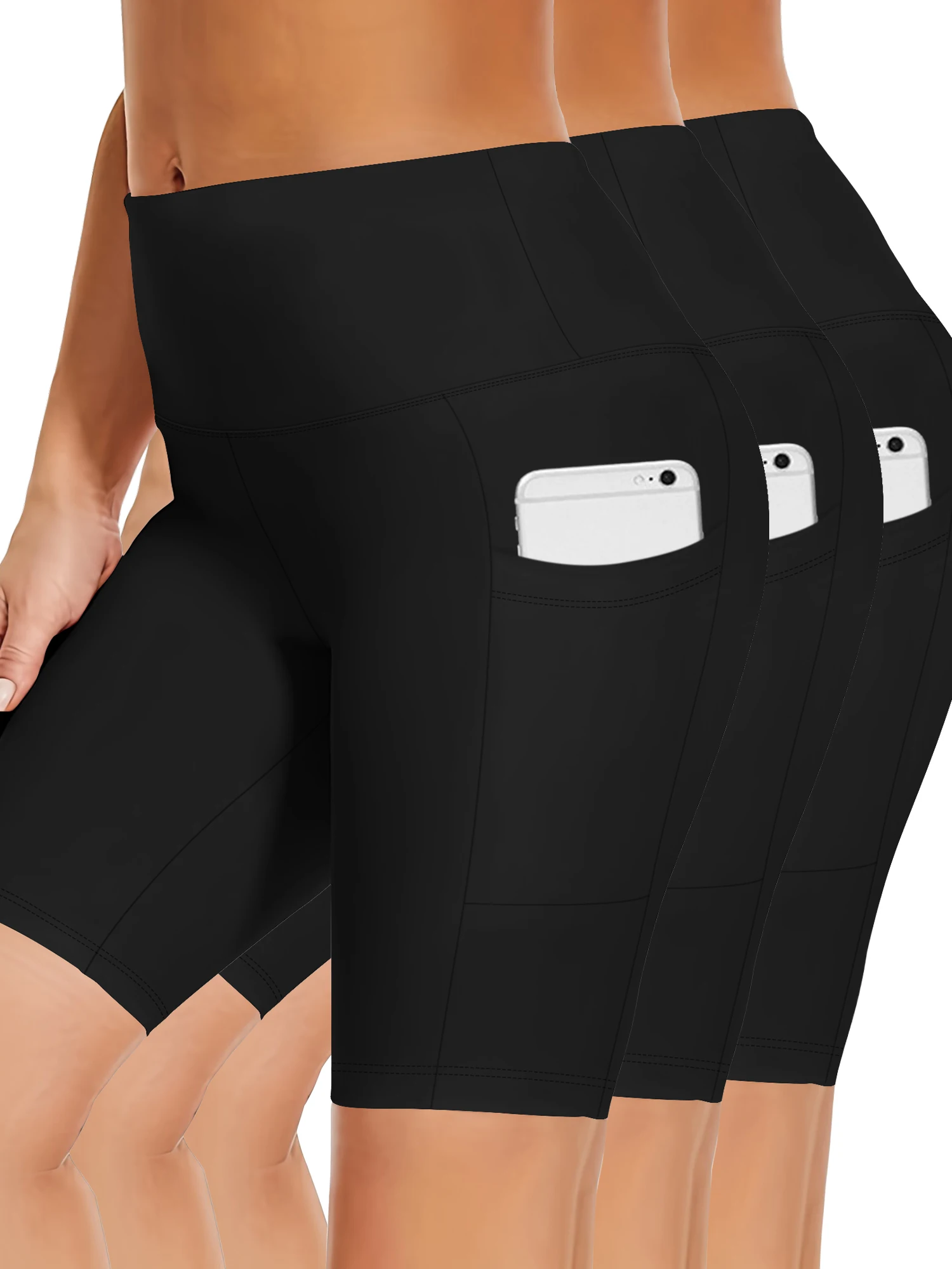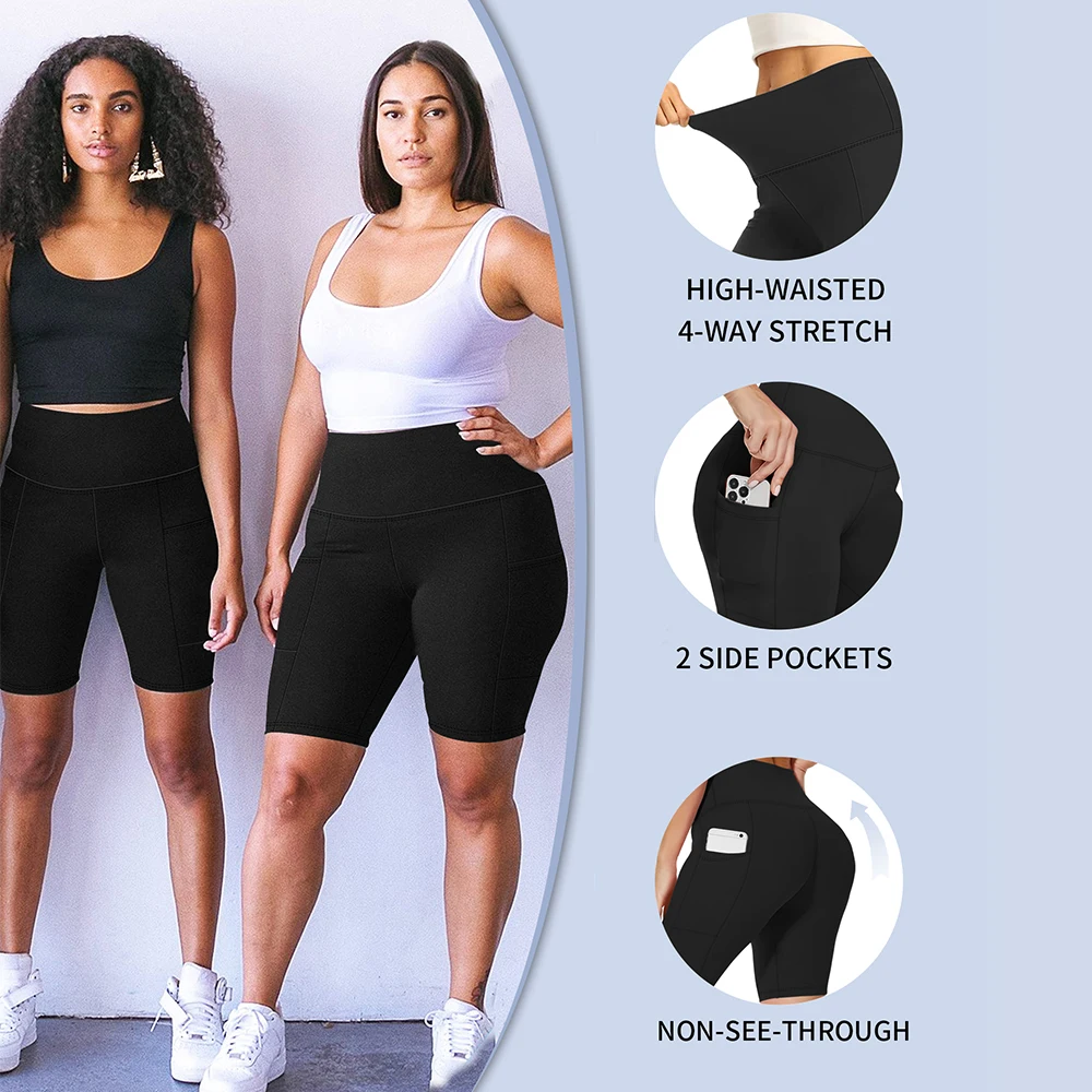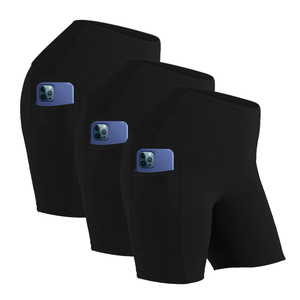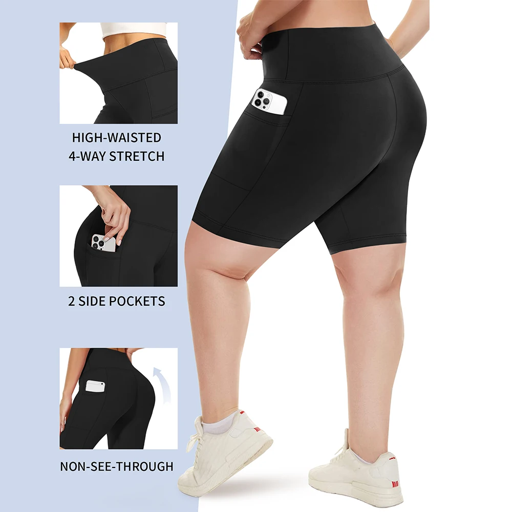 Plus-size 3 Pack High Waisted Workout Shorts Yoga Biker Shorts Two Side Pockets