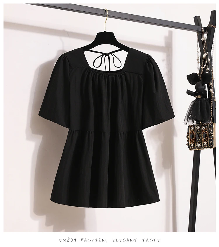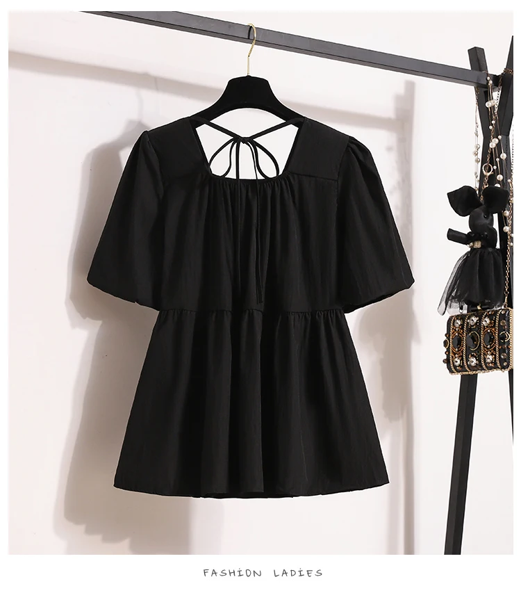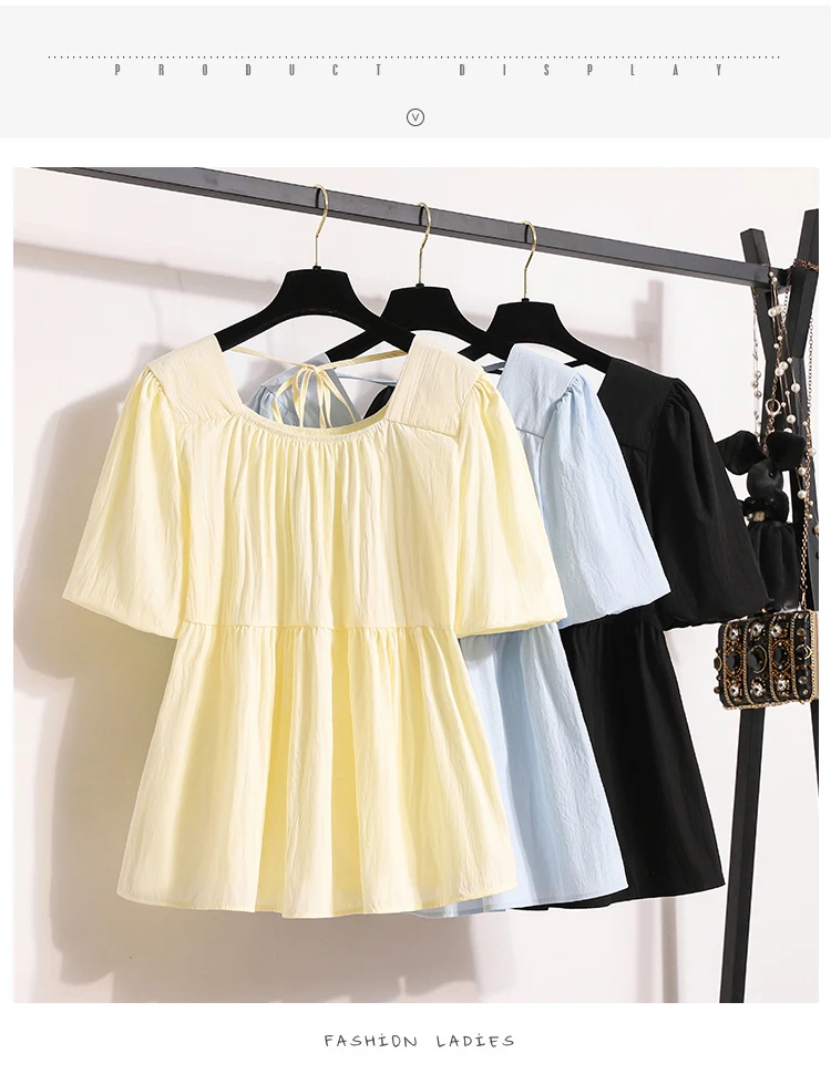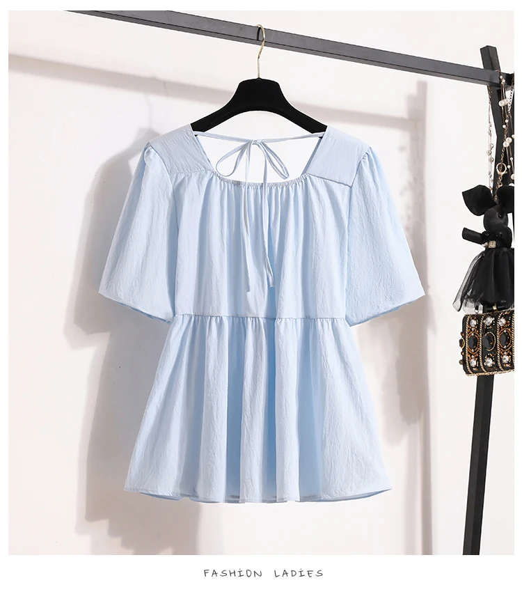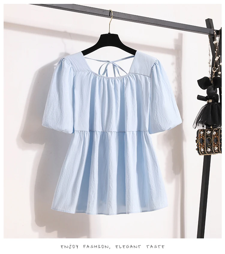 Plus Size Shirts & Blouses Women Summer Fashion Tops Short Puff Sleeve Loose Sweet Blouse Woman L-4XL