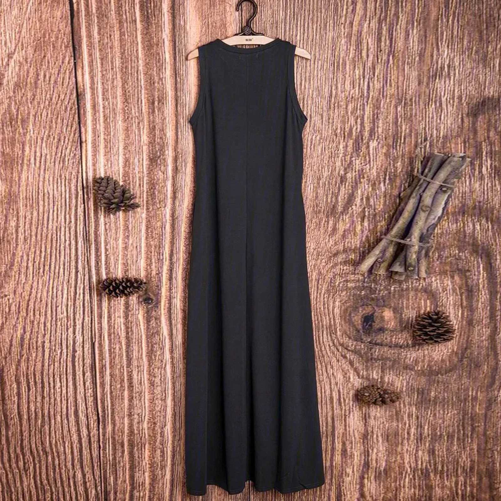 This plus-size women's jersey-knit dress is a perfect blend of comfort and style. Featuring a round neck and sleeveless design, it offers a relaxed fit with a flattering ankle-length silhouette. The flowy, cross-border style provides ease of movement, making it ideal for casual outings or warm weather. The dress is equipped with practical pockets, adding a functional touch to its chic look. Available in large sizes, it's a best-seller known for its lightweight, breathable fabric and versatile, easy-going style. Whether you're dressing up or down, this dress is a wardrobe staple for effortless chic. Please note, there may be additional shipping due to tariffs.
