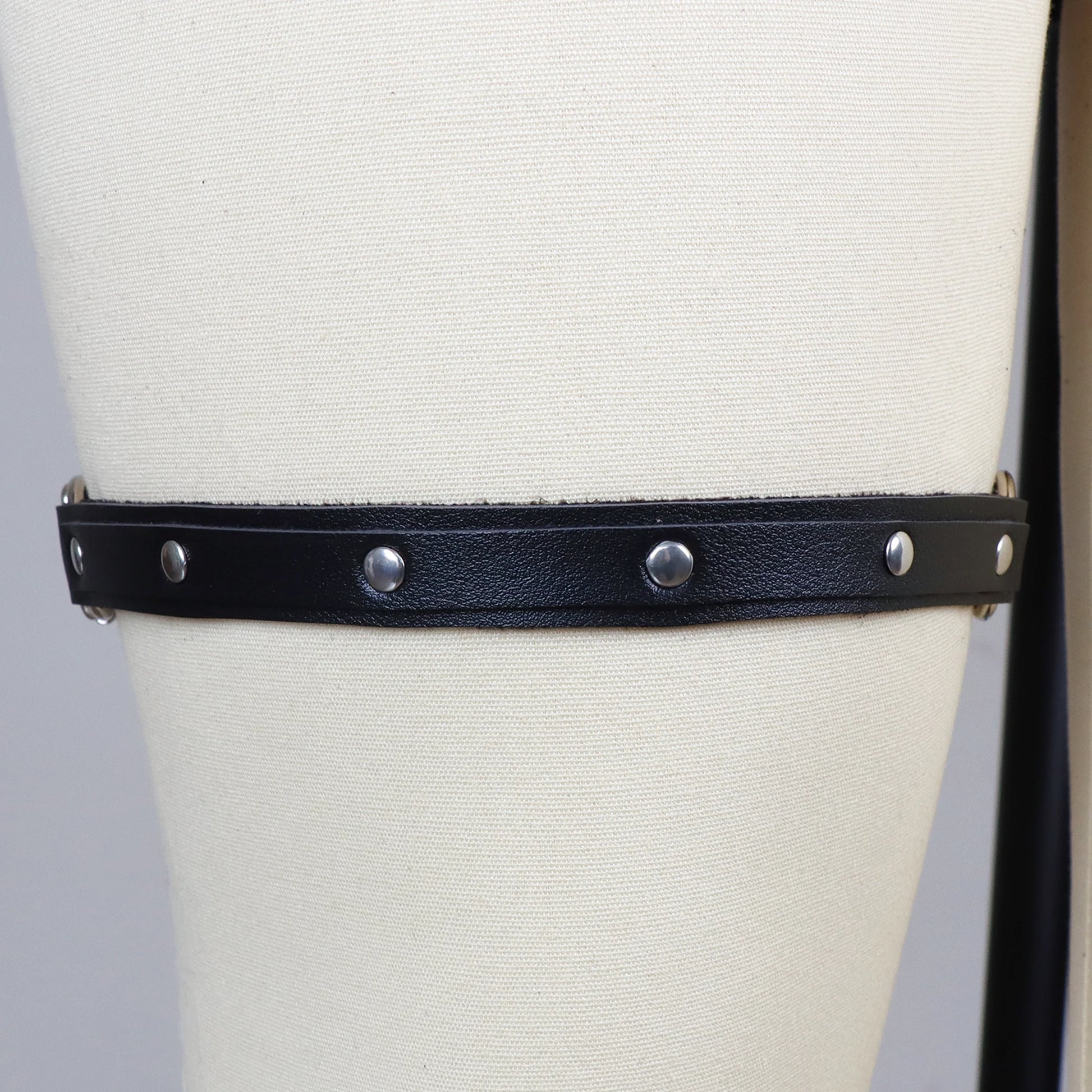 Unleash your edgy side with this 3 cm wide punk-style thigh-high garter belt, crafted from durable PU leather and accented with bold rivets and a gothic-themed sword accessory. Designed for women, this unique accessory adds a fierce, rebellious touch to your outfit, perfect for making a statement with any daring look.