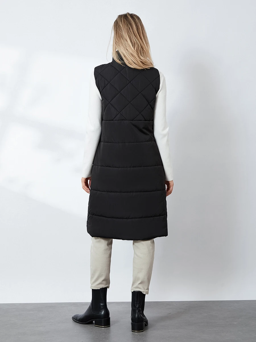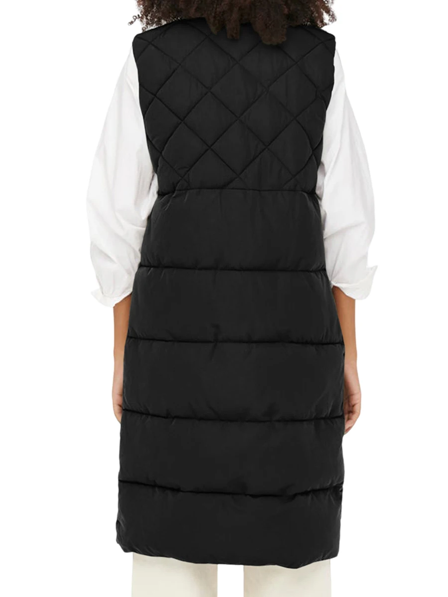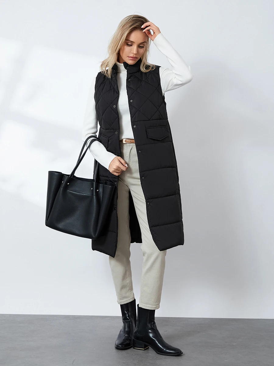 Solid color quilted design, stand collar, modern design, 2 pockets, front button closure, sleeveless, mid-length, women's puffer vest, quilted puffer jacket is not only warm but also lightweight, stylish and comfortable.