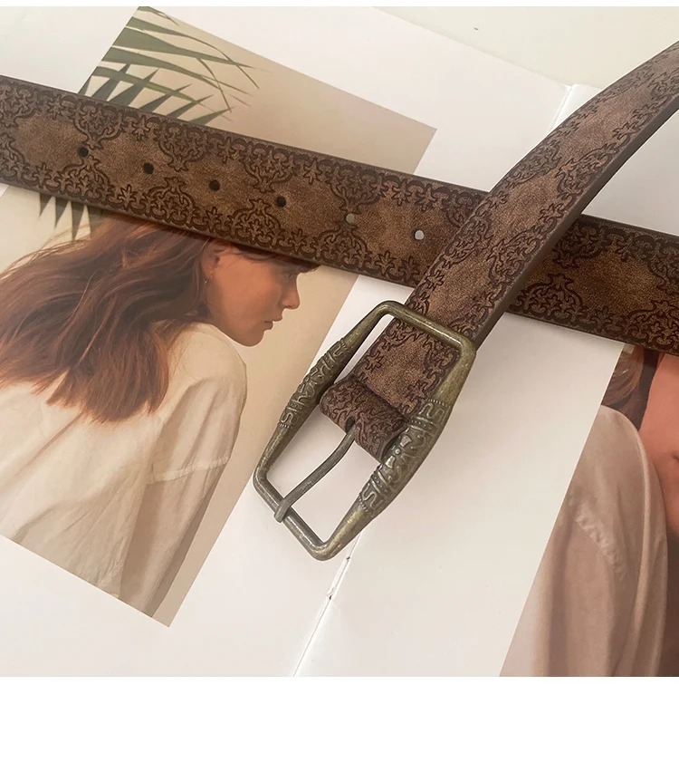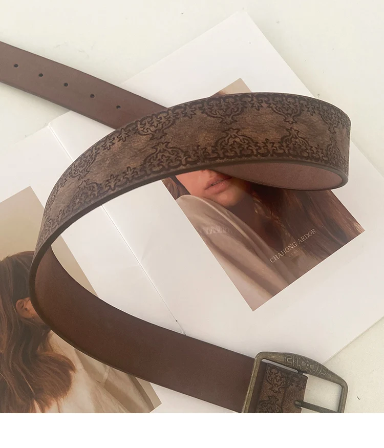 Elevate your everyday style with this 3.8cm wide retro women's belt, crafted from durable PU leather in a rich brown tone. Designed with a national wind aesthetic, it pairs effortlessly with jeans and casual wear, adding a refined and senior sense of fashion to your outfit. A stylish accessory that combines tradition with modern casual appeal.