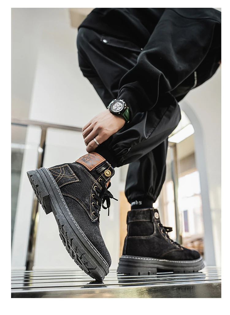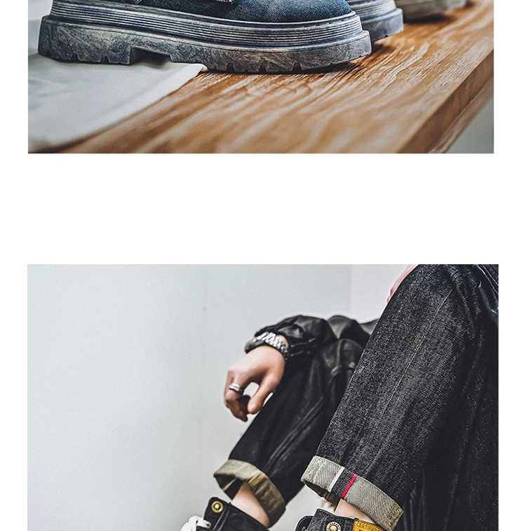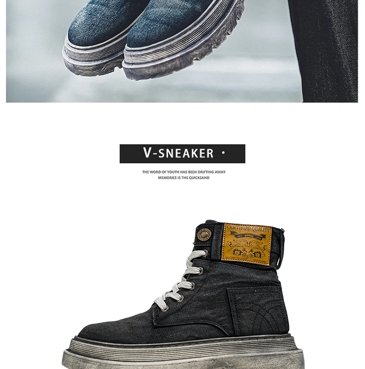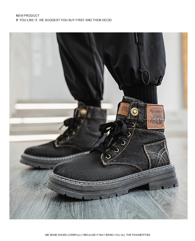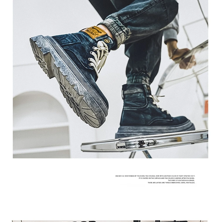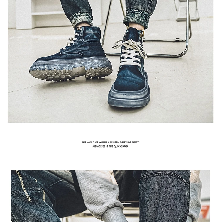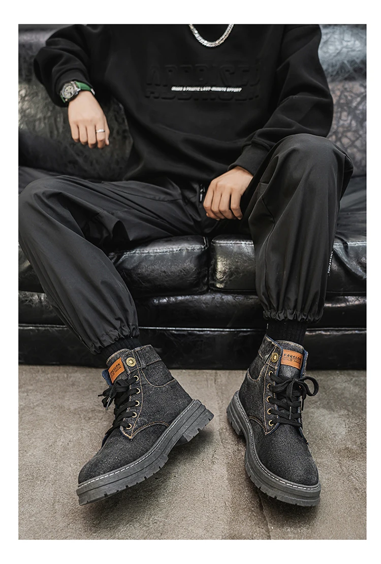 Step into rugged retro style with the MEOD Retro Blue Denim Boots for Men, combining the toughness of a tooling boot with the bold look of high-top streetwear. Made from durable denim with detailed sewing accents, these lace-up platform boots feature a sturdy build and medium heel height (3cm–5cm) for added lift and support. The breathable canvas lining, cushioned EVA insole, and high-traction outsole ensure comfort and durability for outdoor work or casual wear. With above-the-ankle coverage, a solid pattern, and retro western vibes, these boots are the perfect blend of function and fashion.