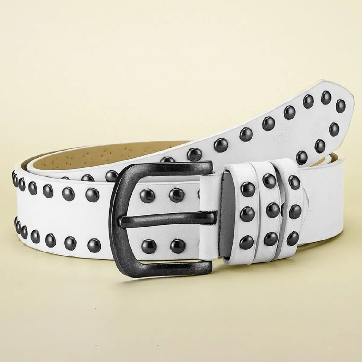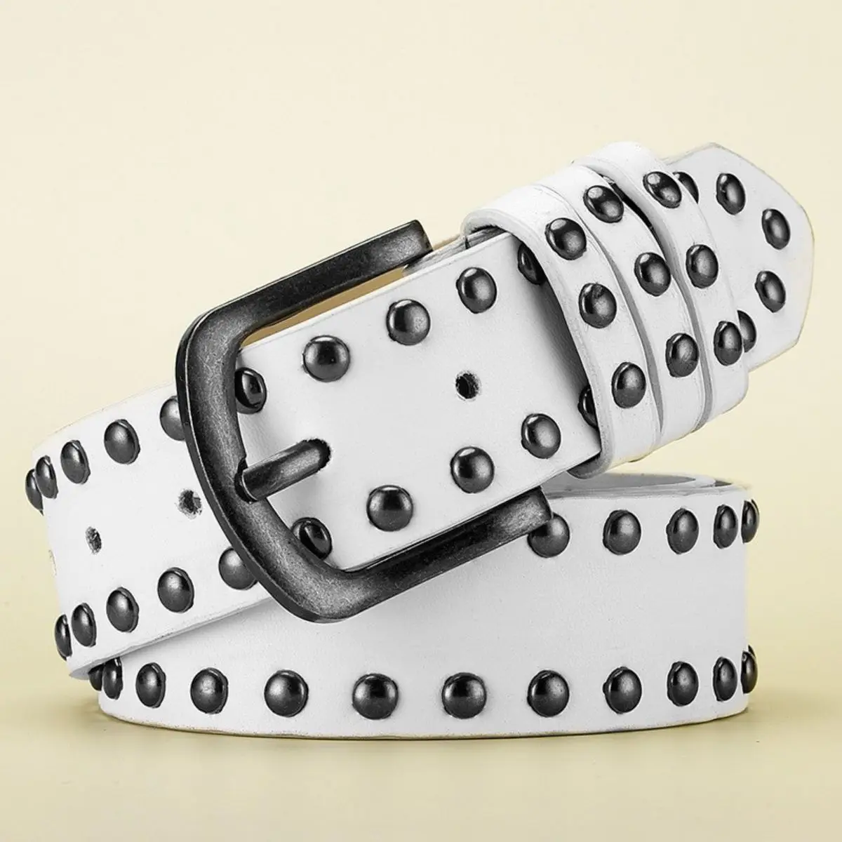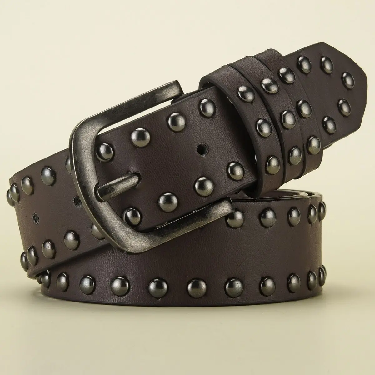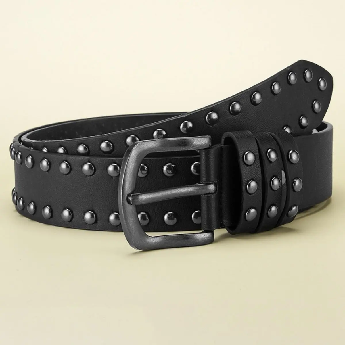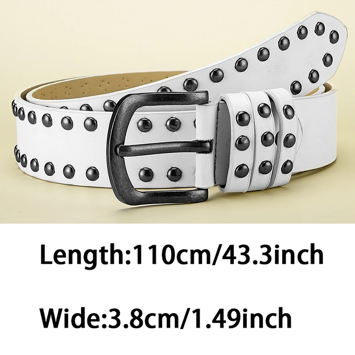 Add edge to your look with this 3.8 cm wide retro rock-style belt, featuring a made-old alloy needle buckle and bold circular rivets. Crafted from durable PU material, this unisex belt delivers vintage flair and modern attitude, making it a standout accessory for jeans and casual outfits alike.