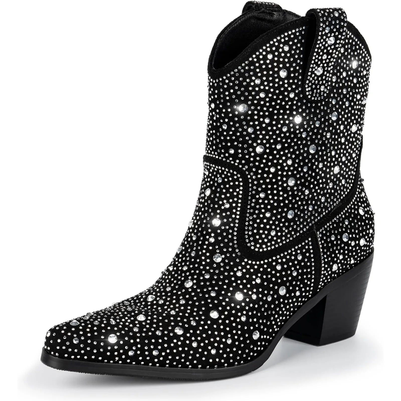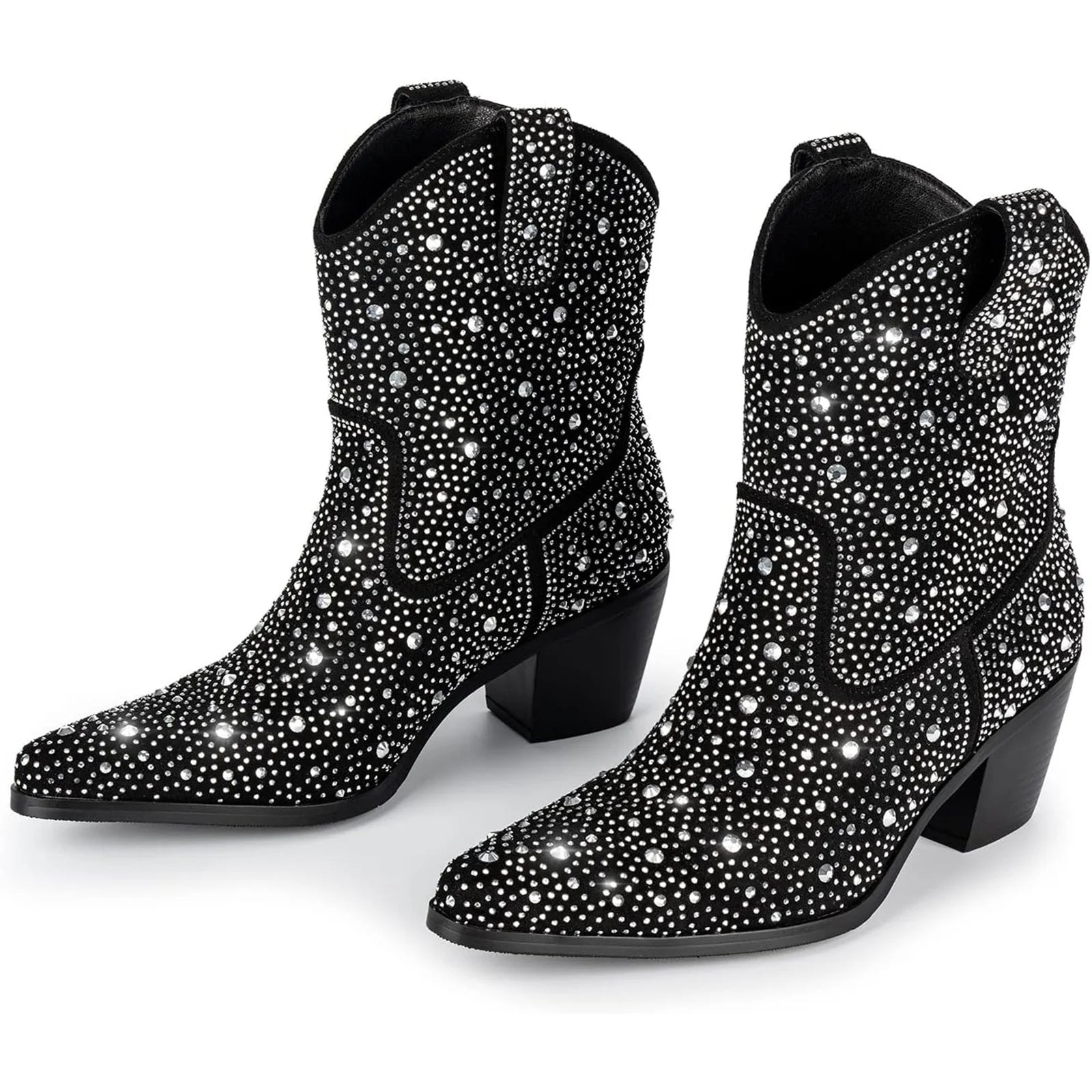 Rhinestone Cowboy Boots for Women - Sparkly Cowgirl Boots Wide Calf Glitter Bling Women's Western Boots