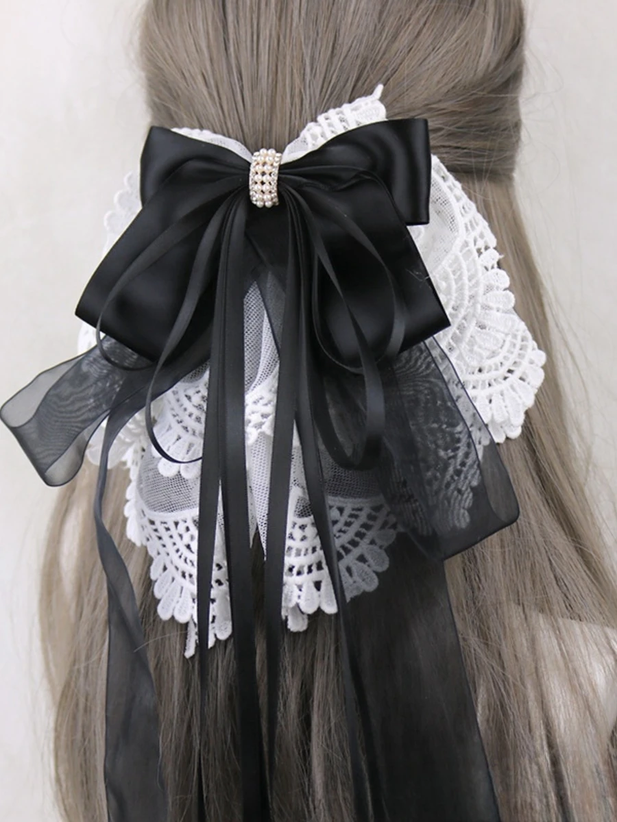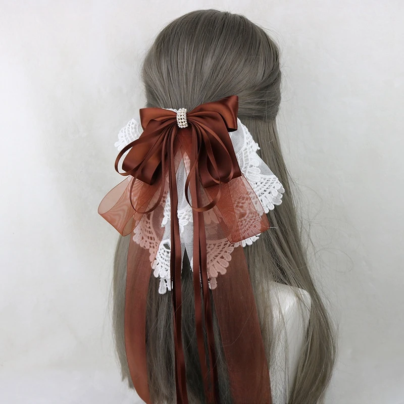 Ribbon Bow Headband With Hairpins Wide Hair Hoop Lace Ruffled Tassels Hair Bands Sweet Hair Accessories