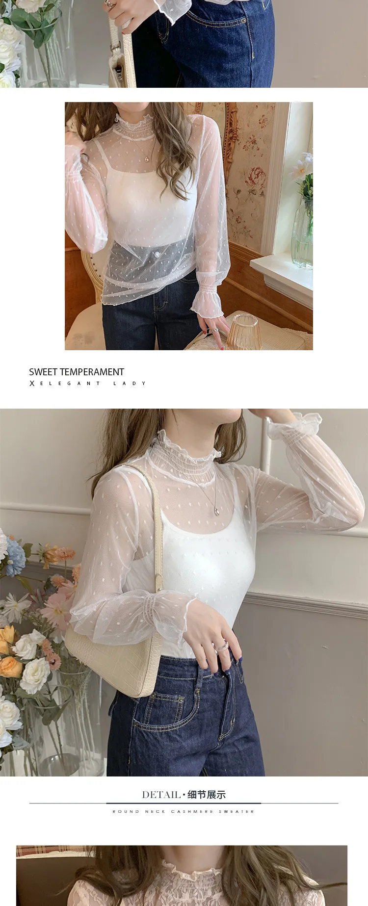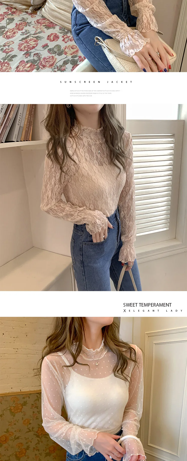 Add a touch of elegance to your wardrobe with this slim-fit lace blouse, designed for effortless sophistication. Crafted from high-stretch polyester with a delicate floral lace pattern, it offers both comfort and style. The standing O-neck enhances its refined appeal, while the petal sleeves add a feminine and graceful touch. Designed as a pullover for easy wear, this versatile top is perfect for all seasons, making it a chic choice for casual outings or dressier occasions. Pair it with tailored pants or skirts for a polished and stylish look.