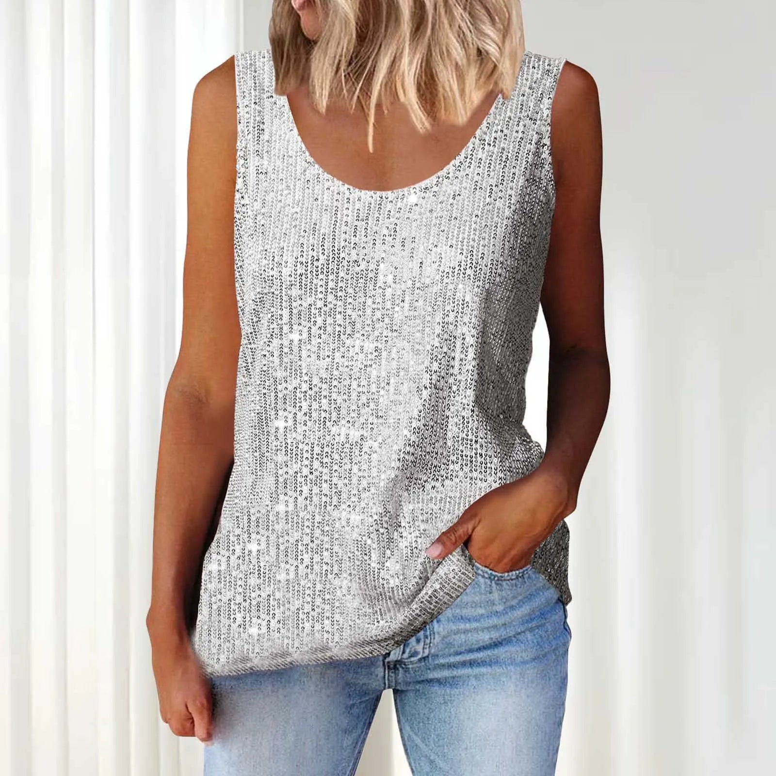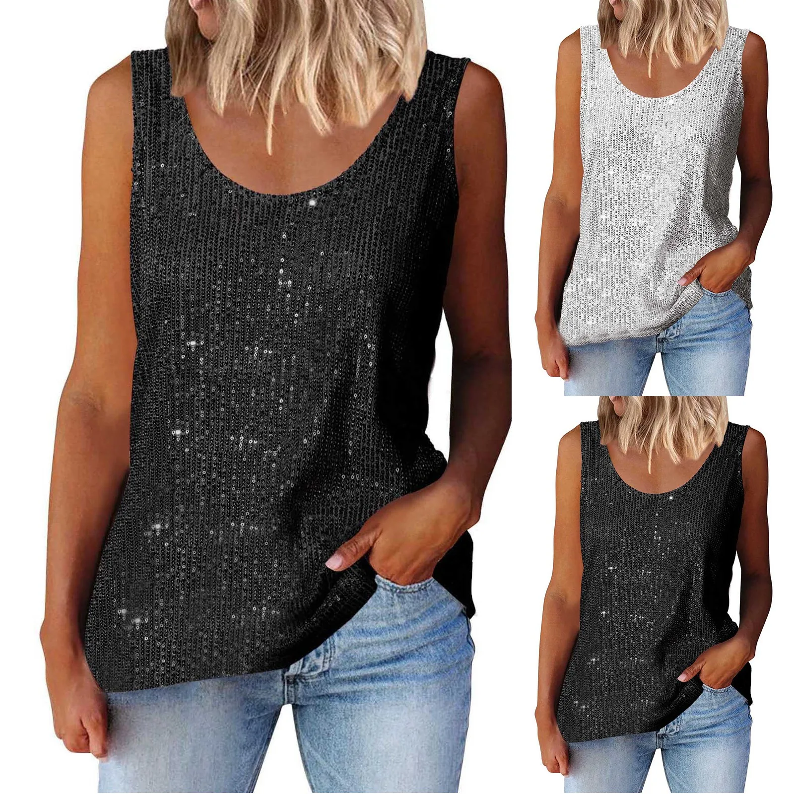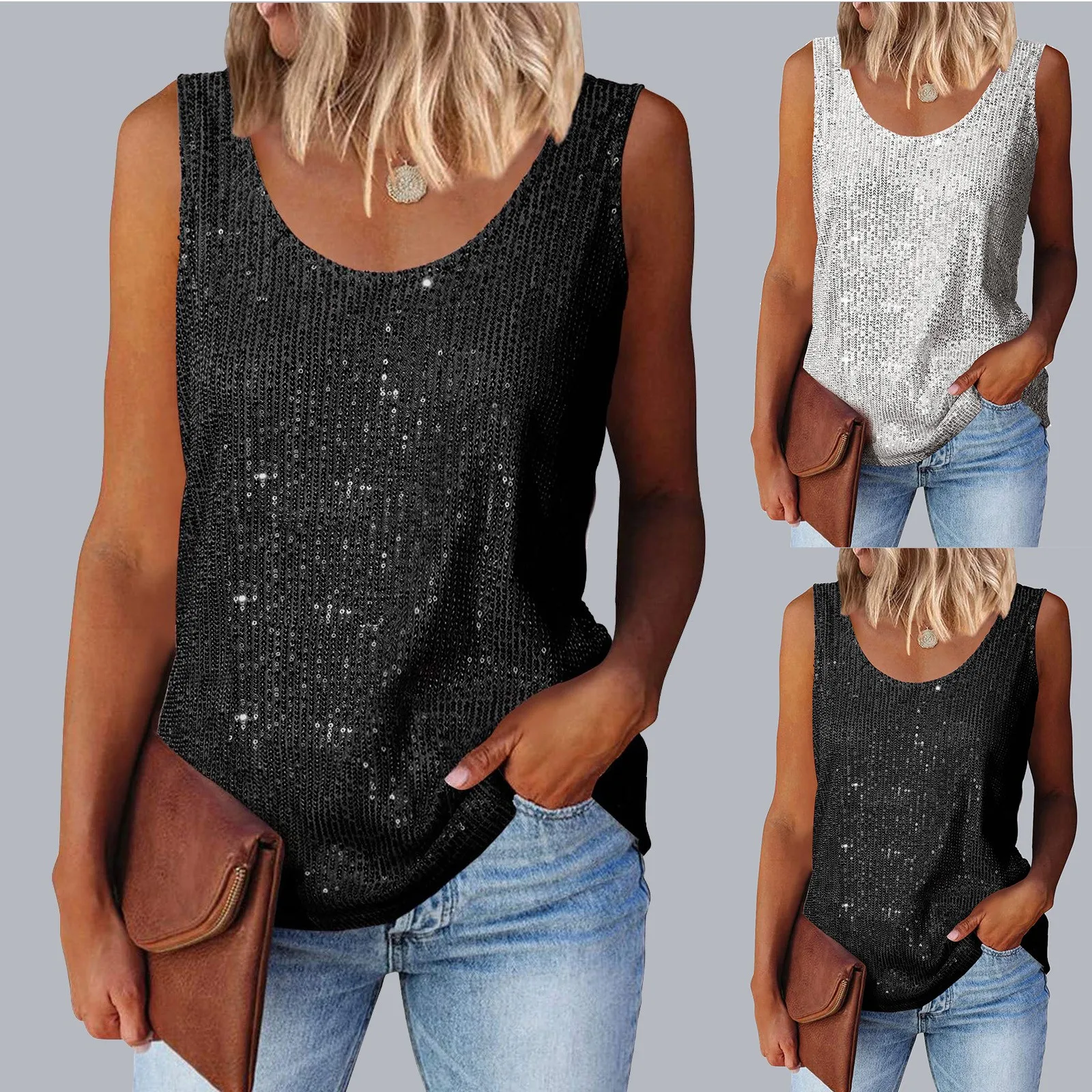 Sequin Women Summer Tank Top Fashion Round Neck Sleeveless Tanks Tops Women Blouses