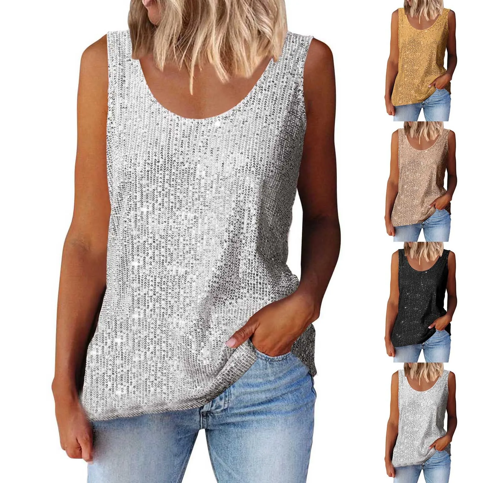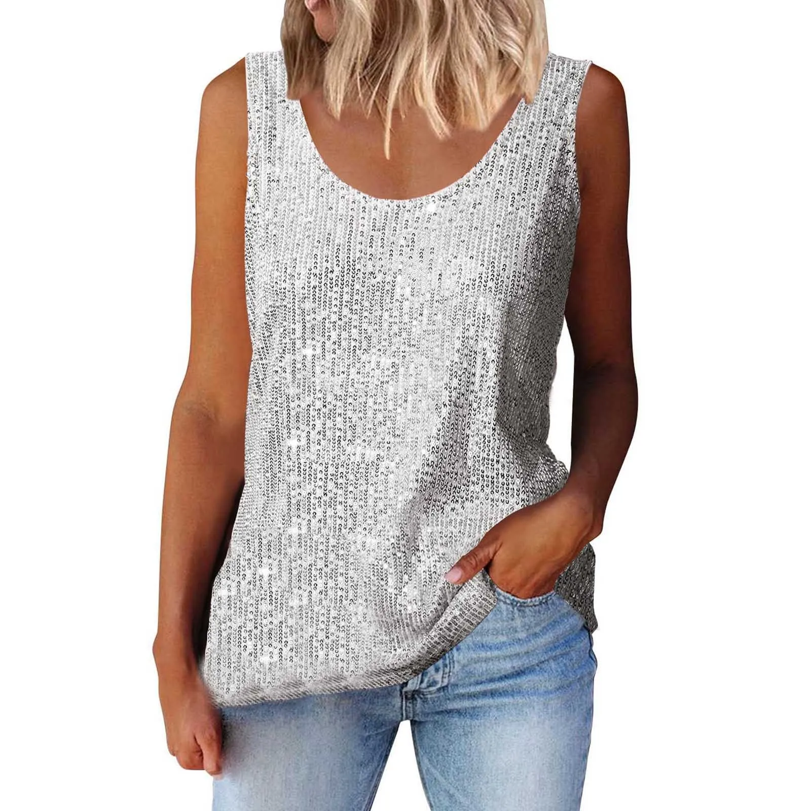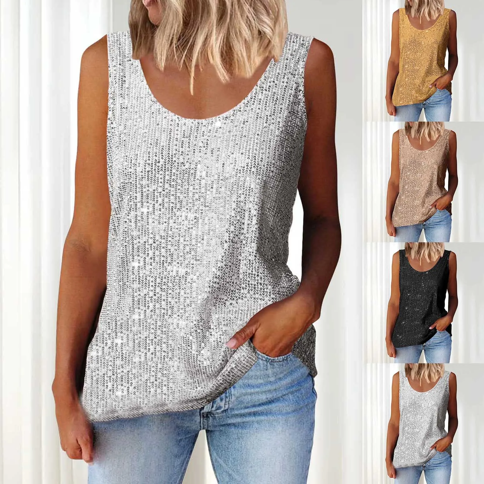 Sequin Women Summer Tank Top Fashion Round Neck Sleeveless Tanks Tops Women Blouses