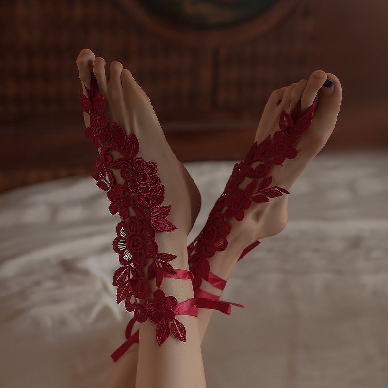 Sexy Stockings Lingerie Lace-up Lace Hollowed-out Socks Women Underwear Accessories Lace Temptation Close-fitting Foot Cover