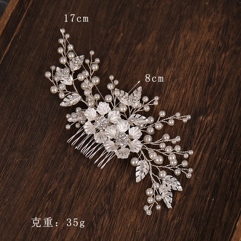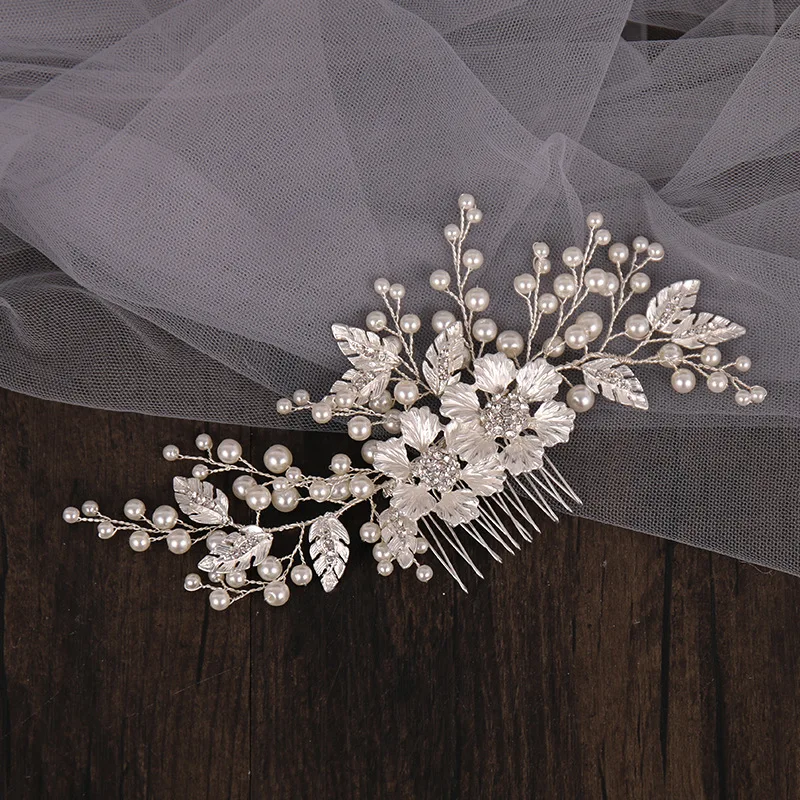 Silver Color Flower Pearl Rhinestone Hair Comb Headband Hair Accessories For Women Headband Hair Jewelry
