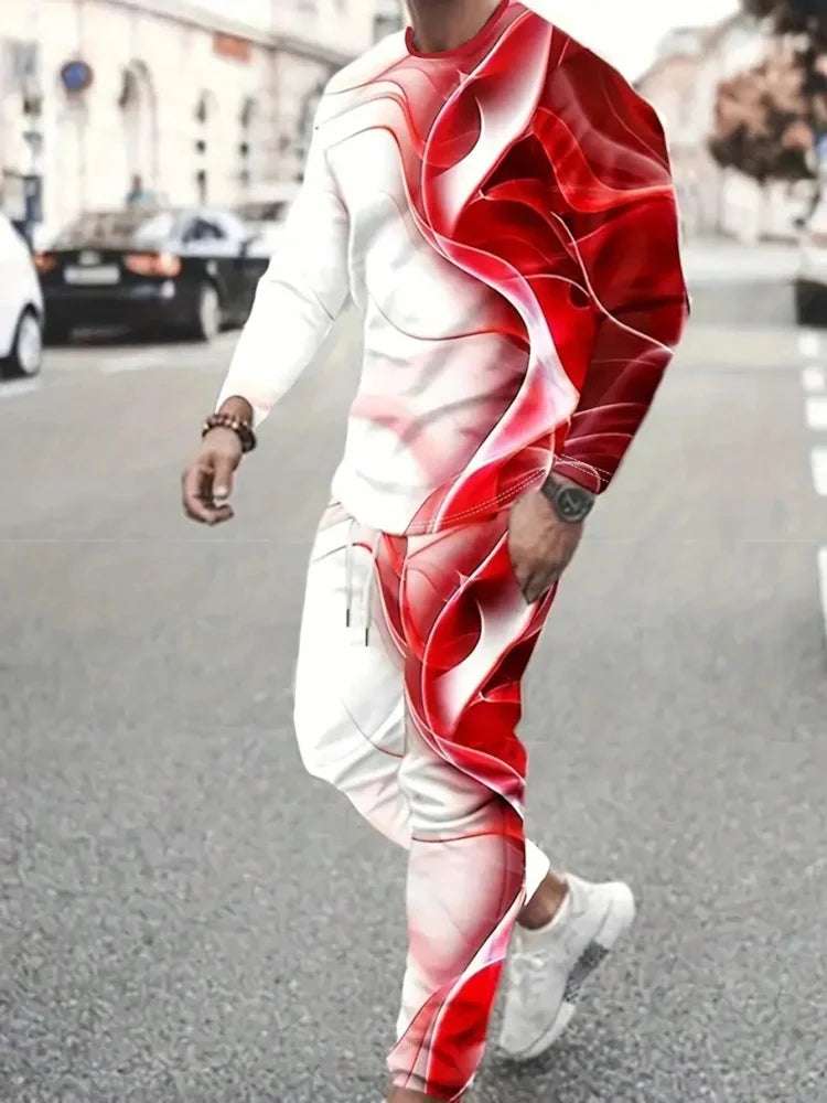 Step into effortless style with this men's fall fashion two-piece set, perfect for shopping or relaxing in comfort. Featuring simple geometric and animal prints, the crew-neck top and matching long pants offer a chic, urban streetwear vibe. Crafted from lightweight polyester, this set is ideal for spring and summer wear, combining trend-forward design with everyday ease.
