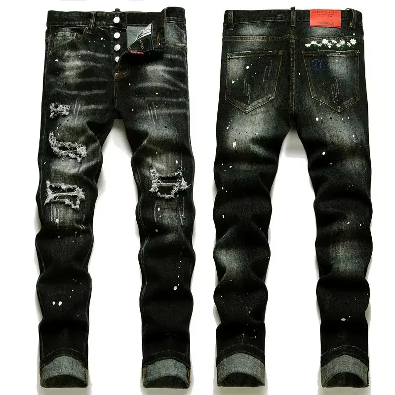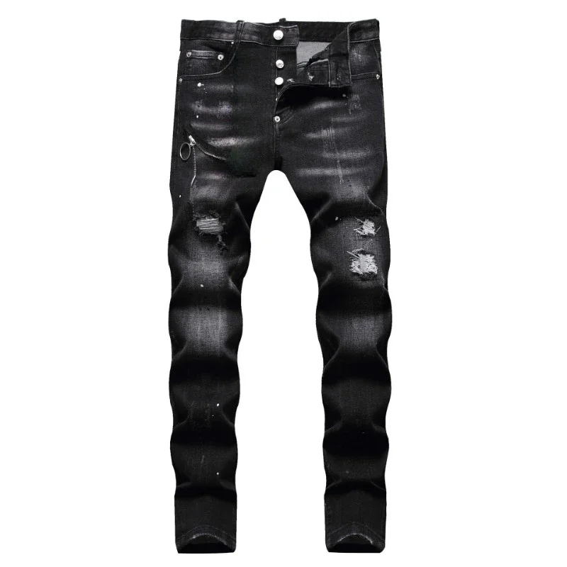 Skinny Denim Jeans Holes Jeans Italian Style Stretch Ripped Denim Pants Quality Denim Trousers
