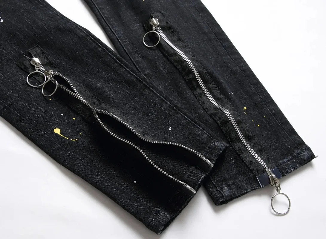 These unisex full-length jeans feature a classic button fly closure and a mid-rise waist for a secure, comfortable fit. Crafted from a blend of cotton and denim, they offer midweight durability with a light wash finish. Designed in a sleek pencil pants style with printed patterns and functional pocket detailing, these jeans bring a modern twist to casual wear. Please note: this item incurs extra shipping charges due to international tariffs.