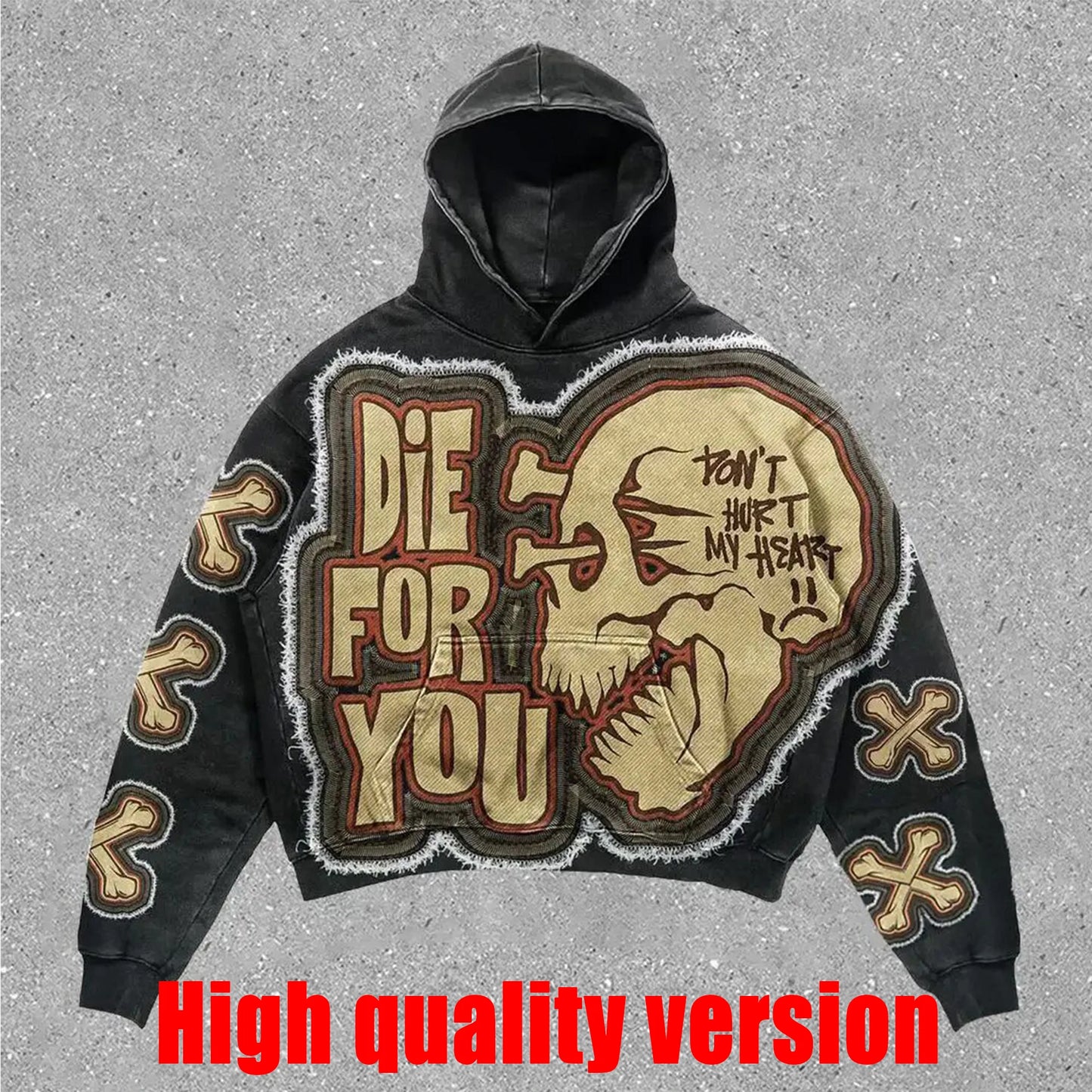 Skull Hoodies Fashion Print Top Oversized Pull-over Hoodie American Streetwear Goth Women