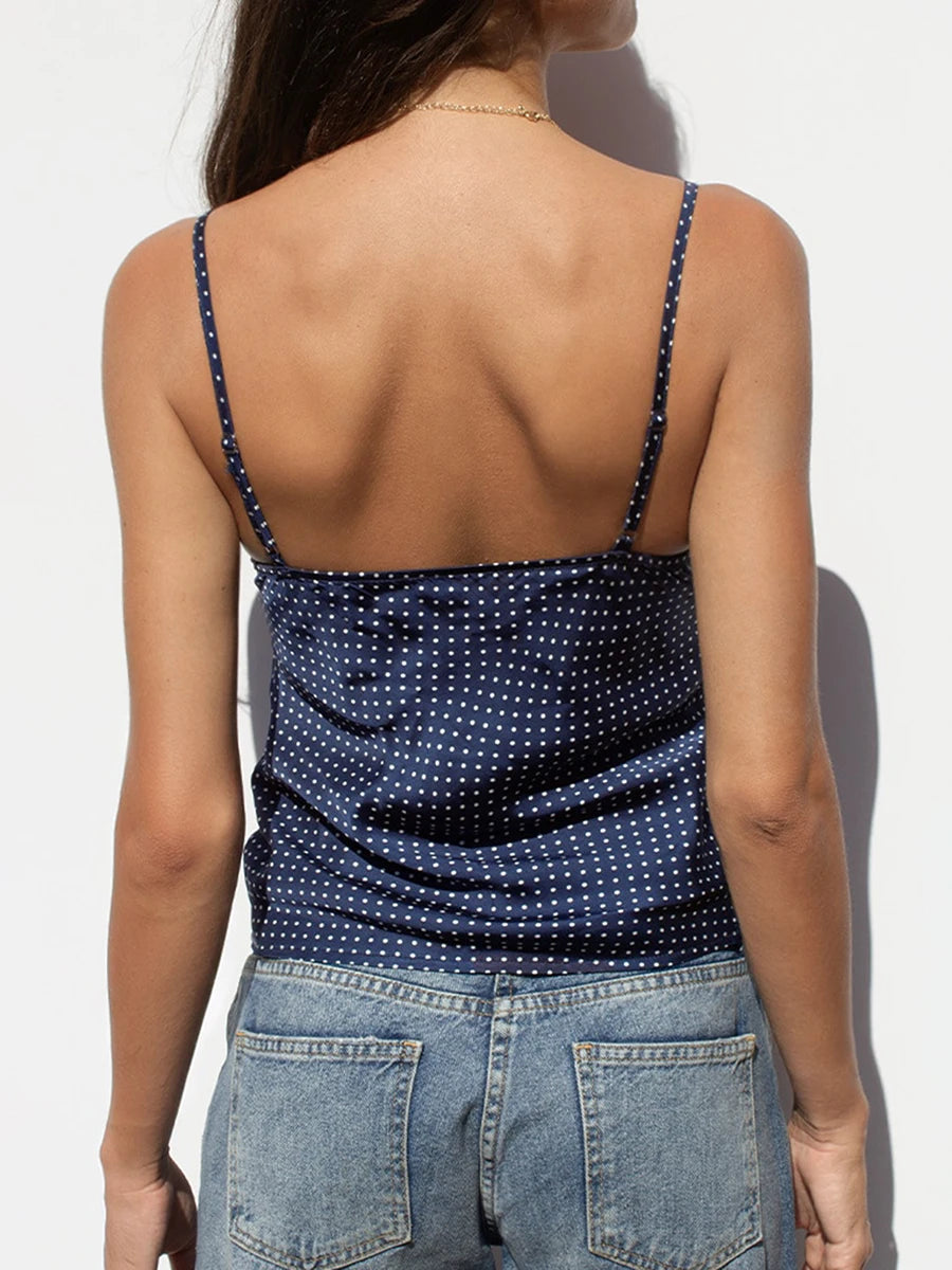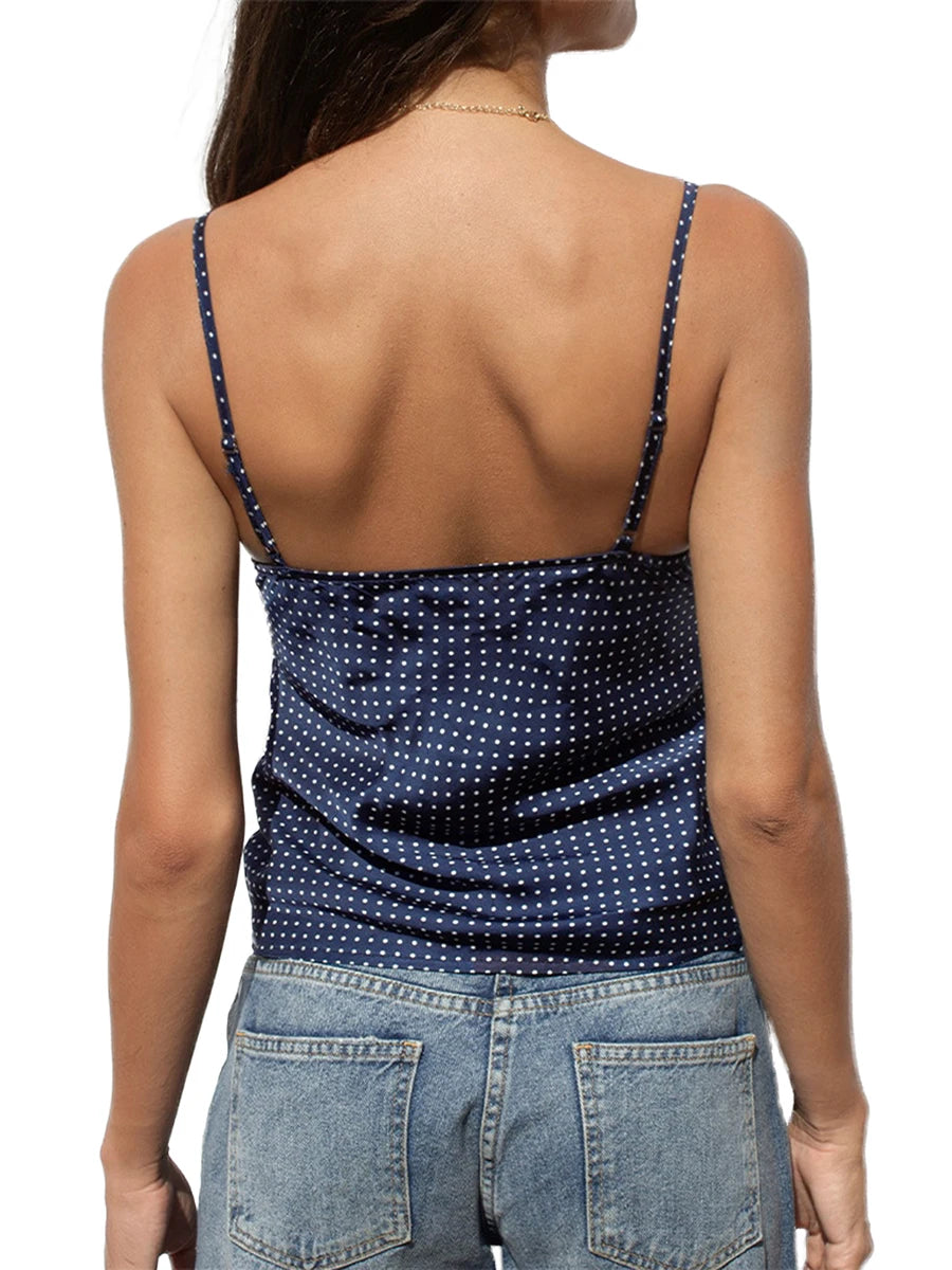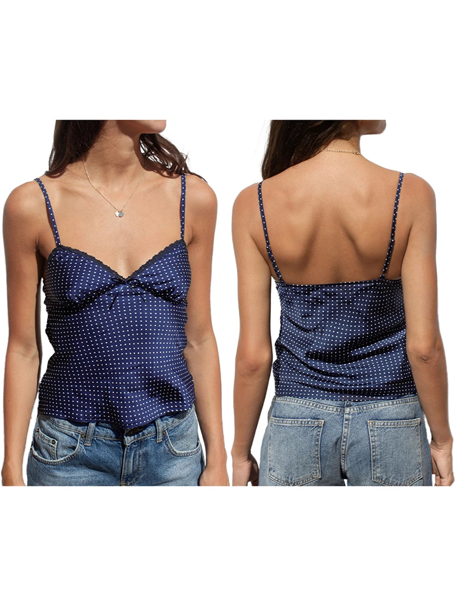 Sleeveless Polka Dot Print Lace Trim Crop Top Spaghetti Strap Camisole Lingerie