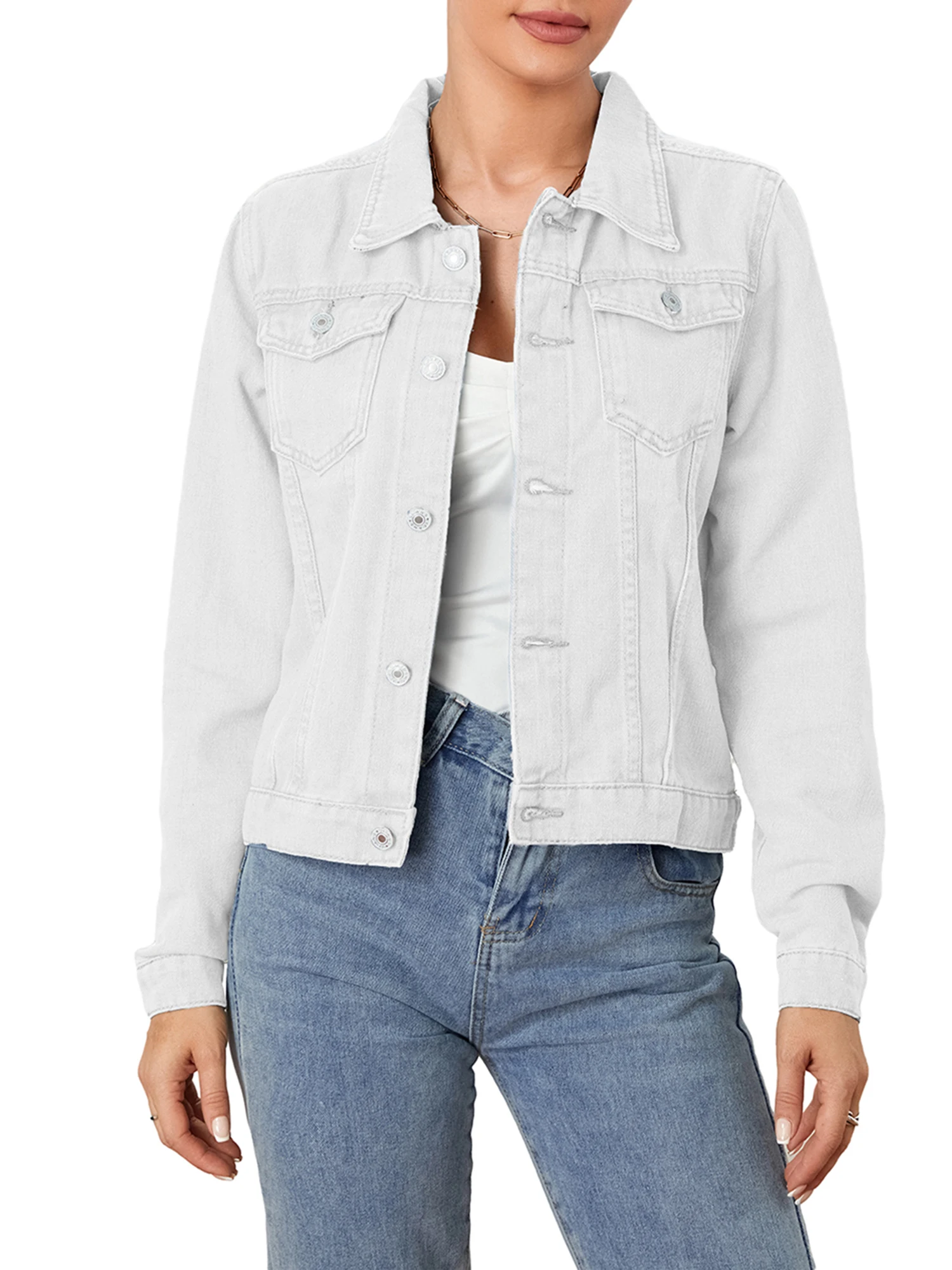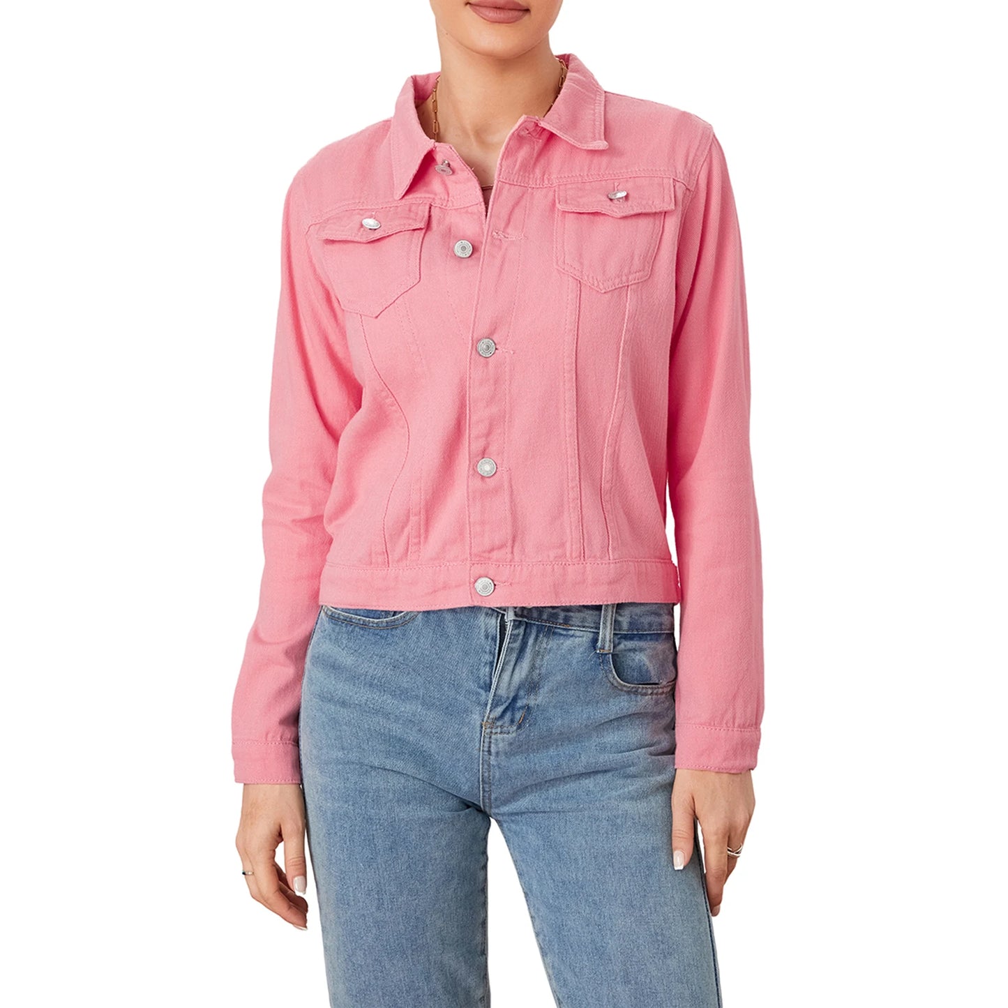 Women´s Solid Color Denim Jacket, Casual Long Sleeve Button Down Chest Pocket Jean Jacket