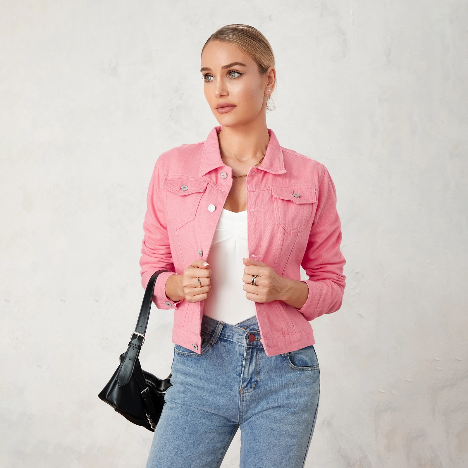 Solid Color Denim Jacket Lapel Button Cardigan Jean Jacket Casual Long Sleeve Short Coat