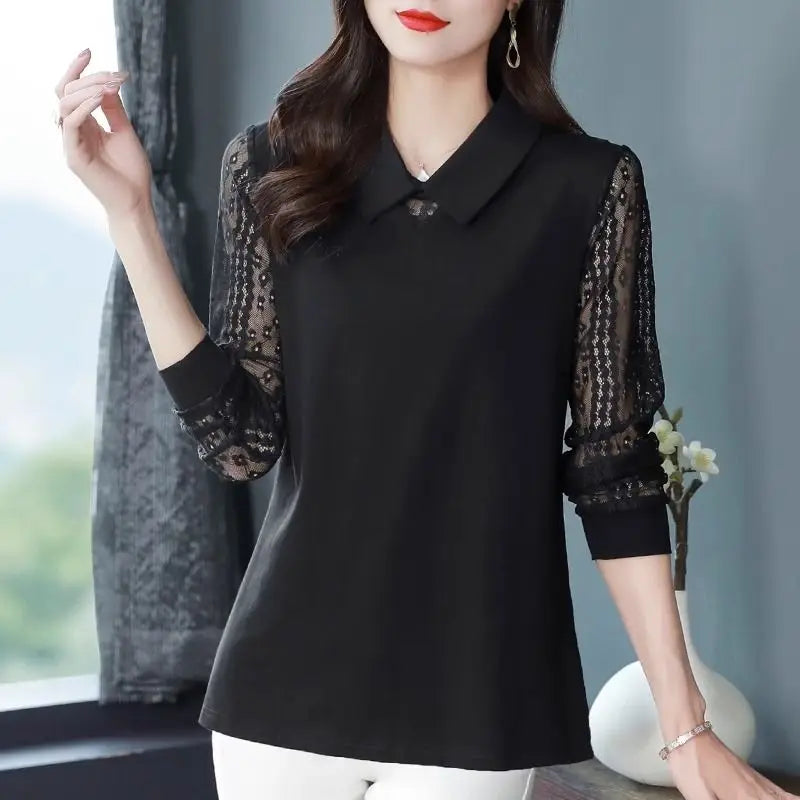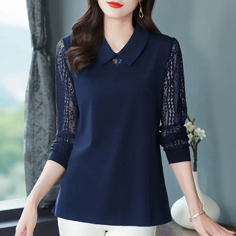 Spring Autumn Elegance Lace Pullovers Long Sleeve Chic Blouses