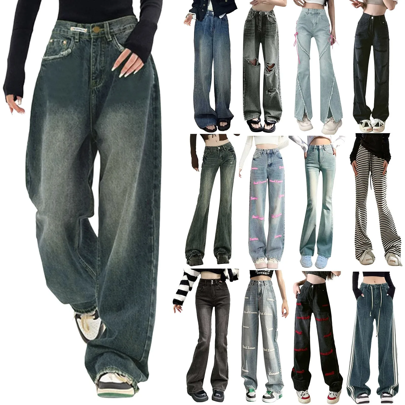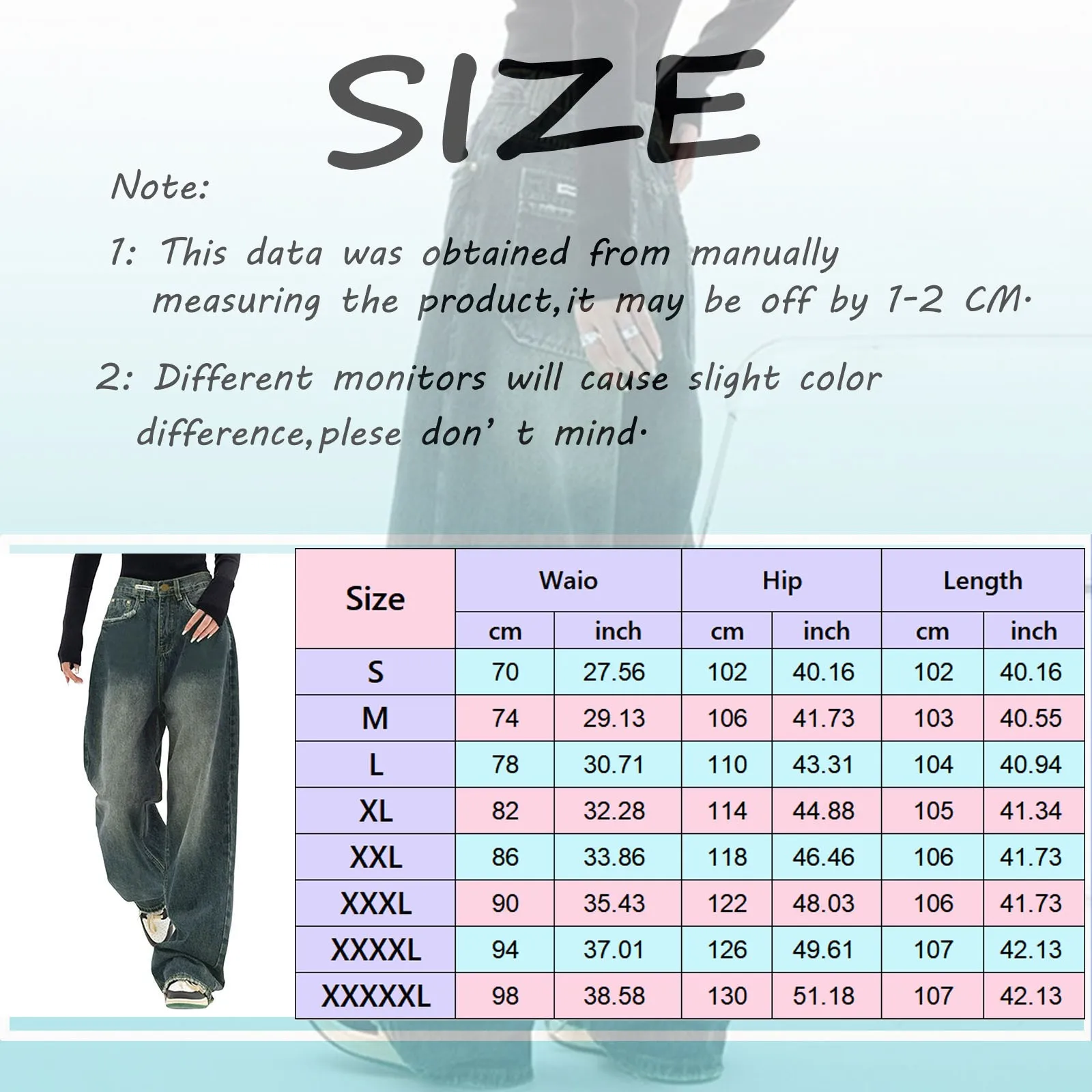 Women Baggy Jeans Trousers With High Waist E Girl Style Streetwear Fashion Vintage Denim Loose Straight Leisure Trousers