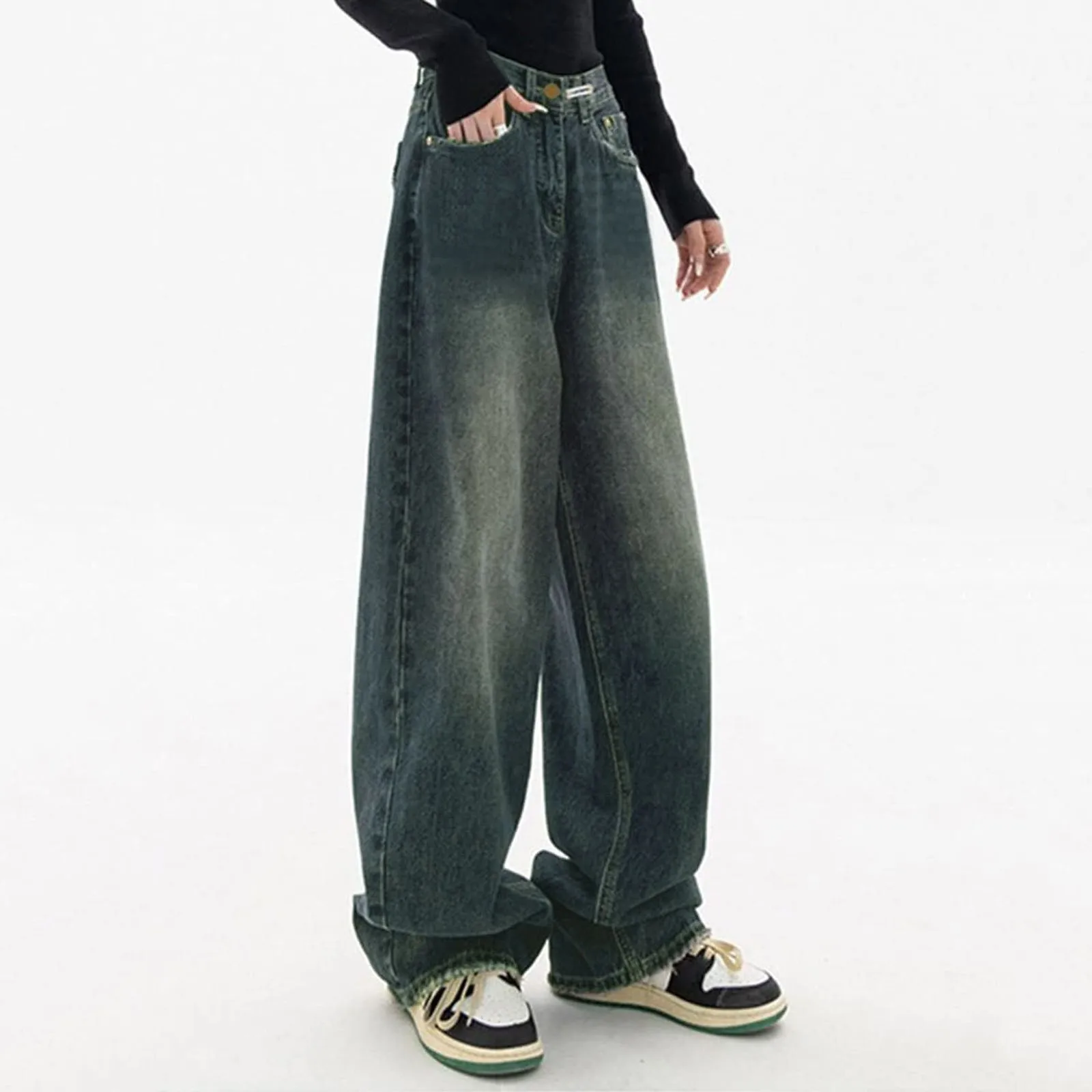 Streetwear Fashion Vintage Denim Jeans Women Baggy Jeans Trousers With High Waist Loose Straight Leisure Trousers