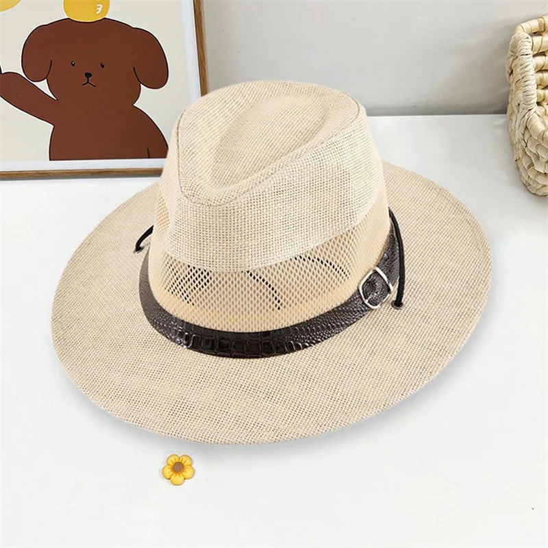 Adult Straw Fedora Hat Breathable Hollow Out Black Belt Decor Panama Cap for Women Men