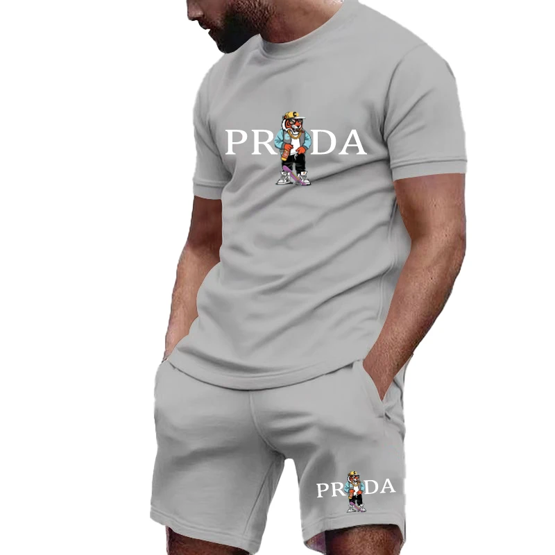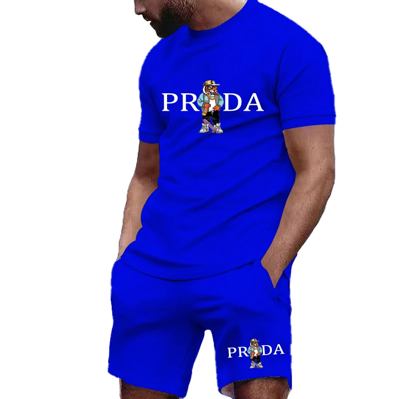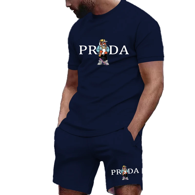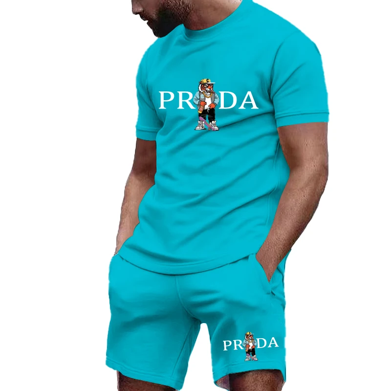 Summer Fashion Men's Gym Sports Set Men's Summer Golf Sports Set O-neck T-shirt with shorts Football Sports Slow Running