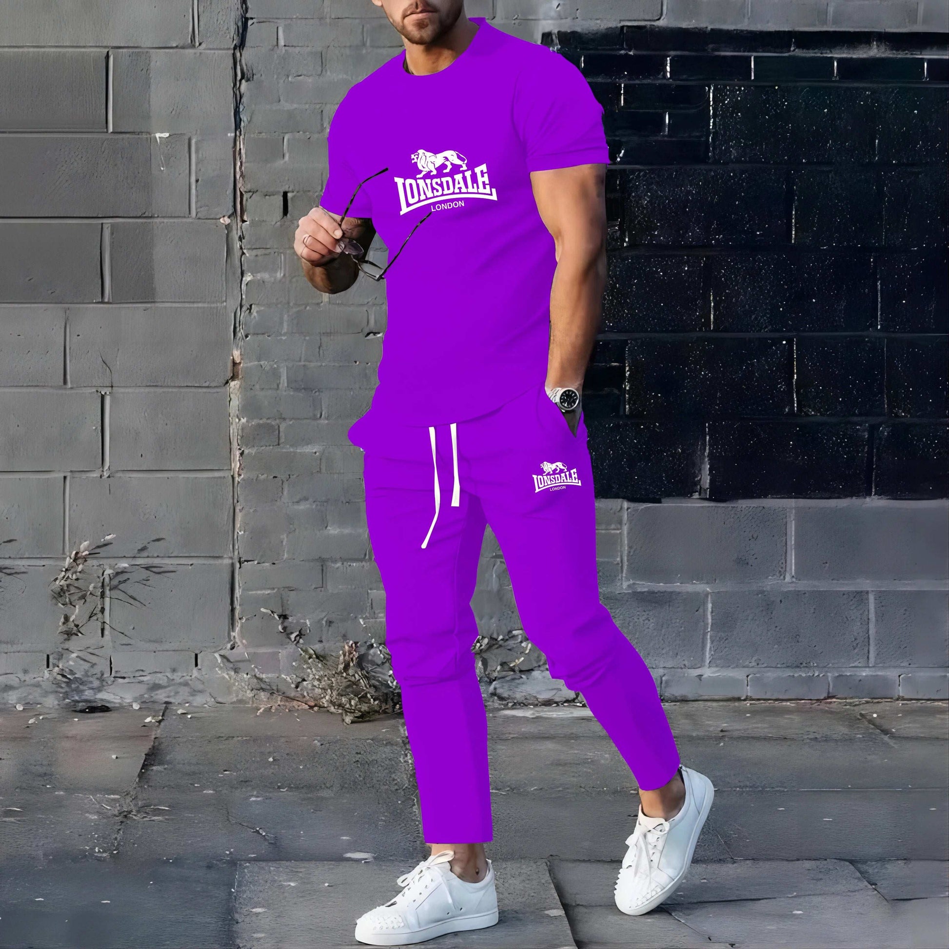 Upgrade your casual wardrobe with this summer hot-selling men’s sportswear suit, perfect for shopping, relaxing, or hitting the streets in style. This fashionable two-piece set features a printed short-sleeve T-shirt and matching elastic-waist pants, crafted from lightweight knit polyester for breathable comfort. With its casual streetwear vibe and relaxed fit, it’s an ideal choice for spring and summer days.