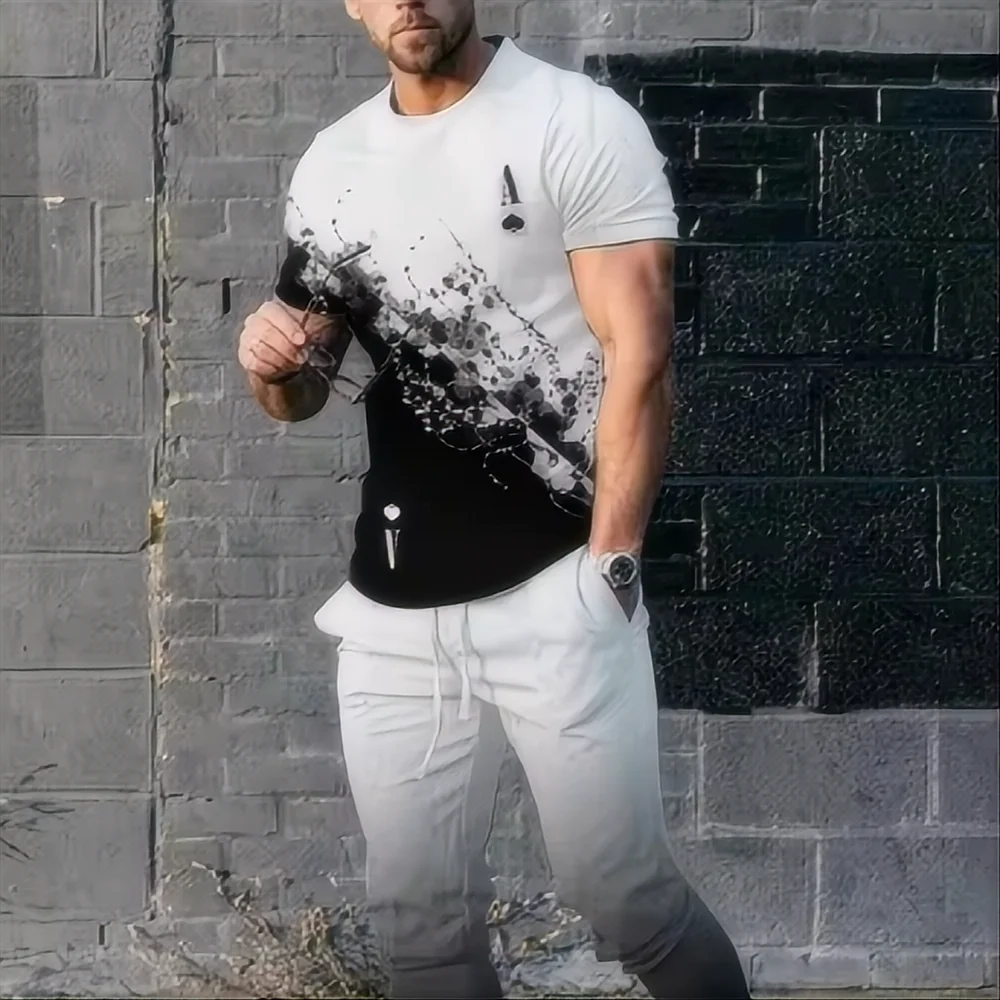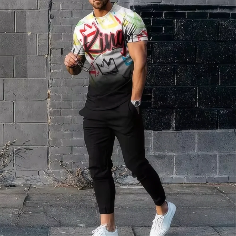 Summer King Letter 3D printed T-shirt and sports pants set for men's fashion sportswear, oversized short sleeved T-shirt and pants