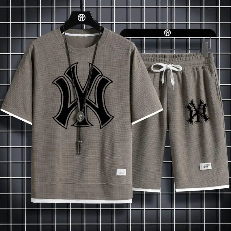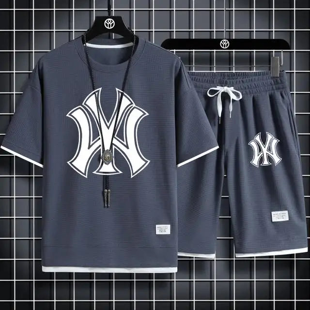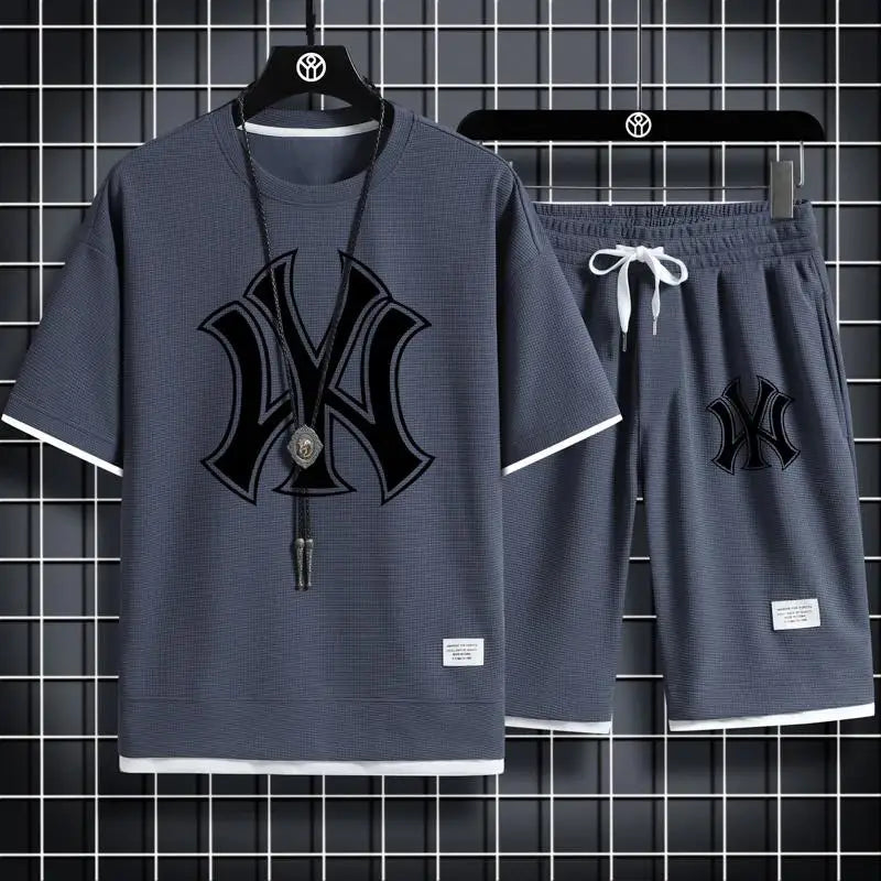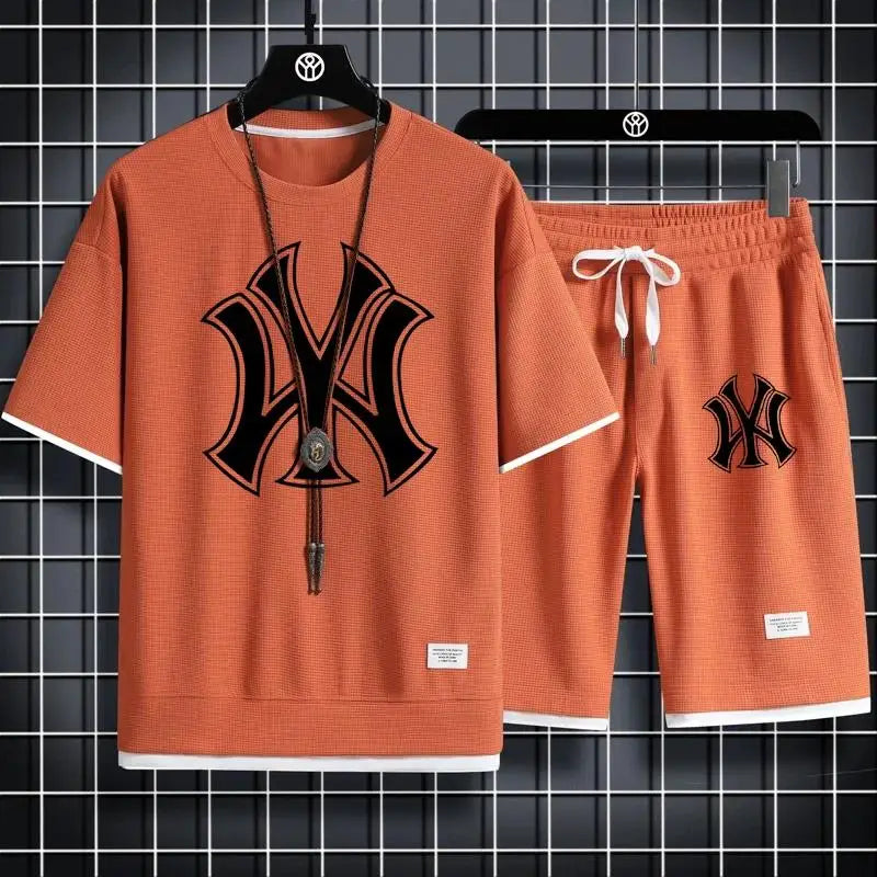 Gear up for beach sports and fitness with this high-quality summer men's two-piece set. Featuring a breathable mesh short-sleeve T-shirt and elastic-waist shorts, both designed for quick drying and ultimate comfort. Crafted from lightweight knit polyester with practical appliques and pockets, this stylish set combines functionality with casual fashion—ideal for staying active and cool during spring and summer workouts.