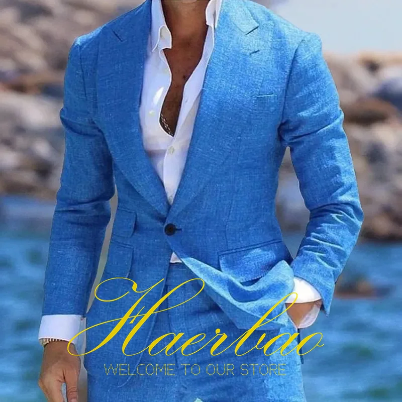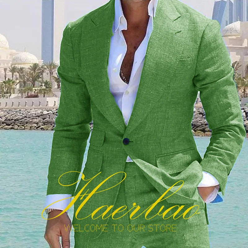 Summer Men's Linen Suit Set of 2 Wedding Groom Tuxedo Formal Lapel Jacket Pants Fashion Tailored Blazer for Men