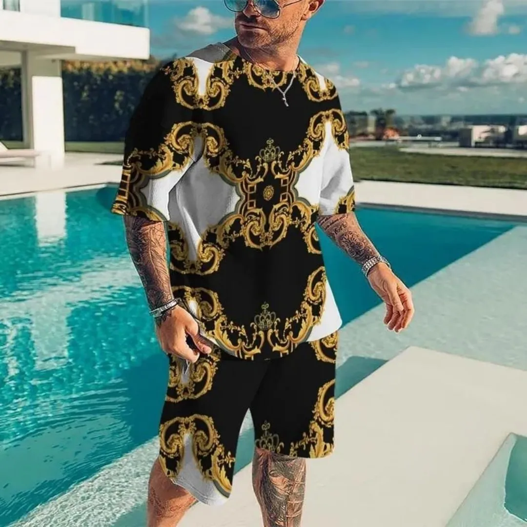 Summer Men's Luxury Pattern Sportswear 3D Printed Short Sleeve T-shirt Set Fashionable Casual Men's T-shirt Two Piece