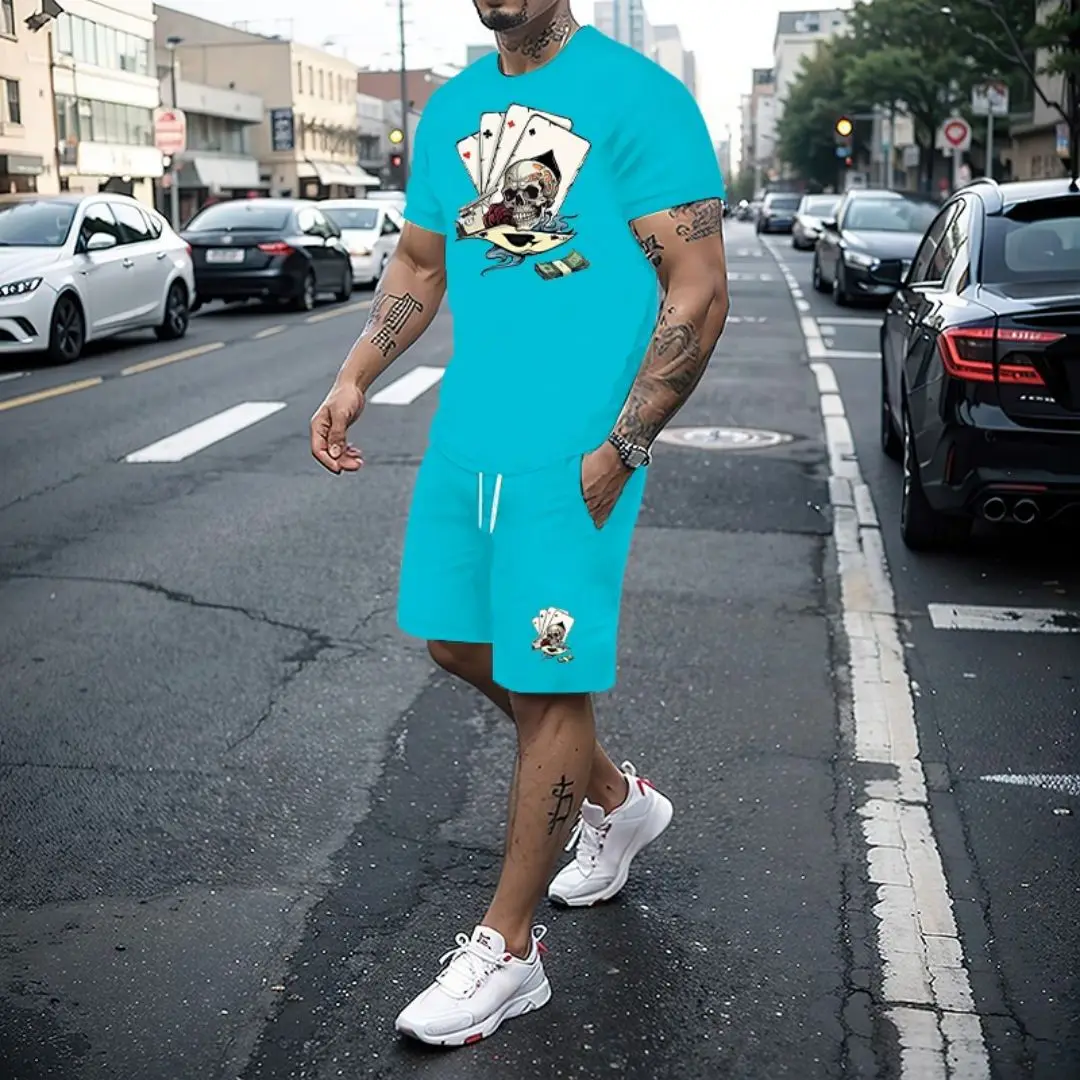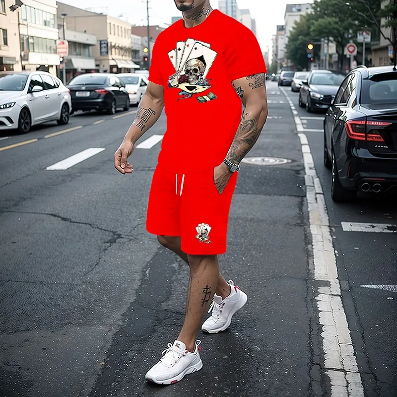 Summer Men's Set 3D Printing Series T-shirt + Shorts 2-piece Set Fashion Street Clothing Casual Slow Running Men's Sportswear