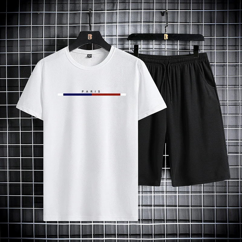 Perfect for spring adventures, this men's short-sleeved shorts set is designed for trips, sports, and relaxation. Made from lightweight, breathable polyester with a quick-drying knit weave, it features a casual O-neck T-shirt and elastic-waist shorts for all-day comfort. Practical pocket details and a modern printed design add both style and function to this easygoing sportswear essential.