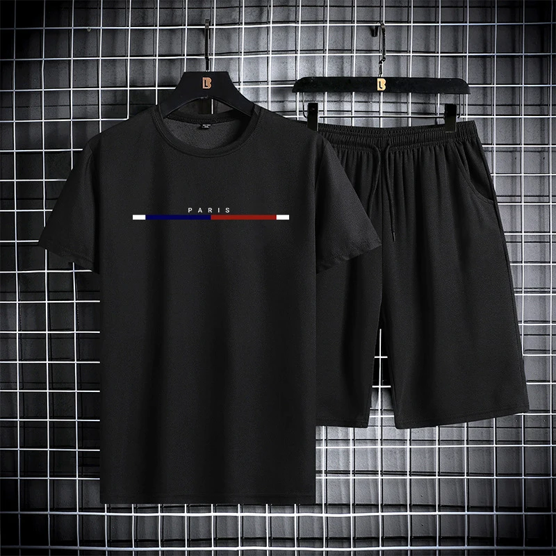 Summer men's short sleeved shorts set with round neck quick drying sports T-shirt thin breathable running sportswear