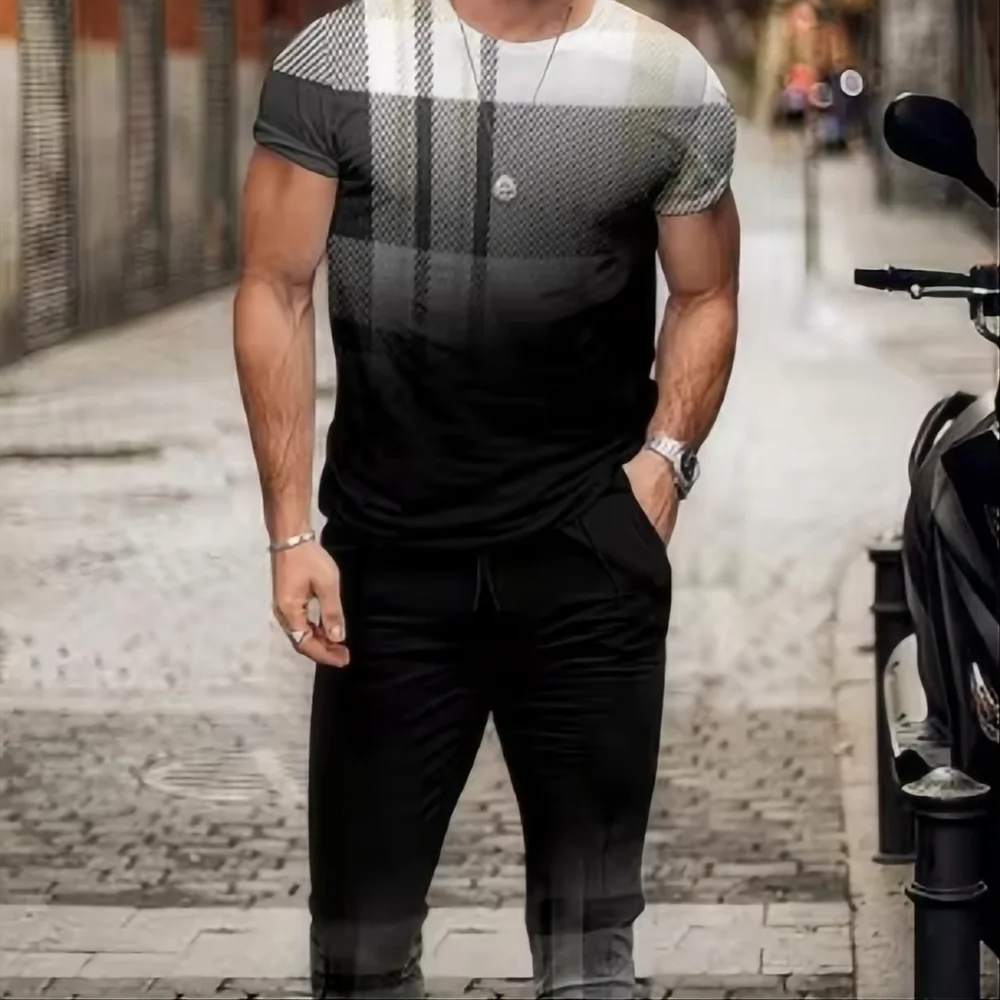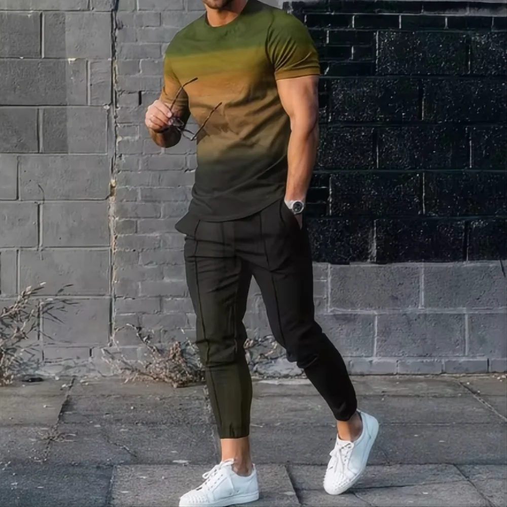 Summer men's T-shirt and pants sports suit abstract gradient 3D printed T-shirt and pants set 2-piece street wear oversized suit