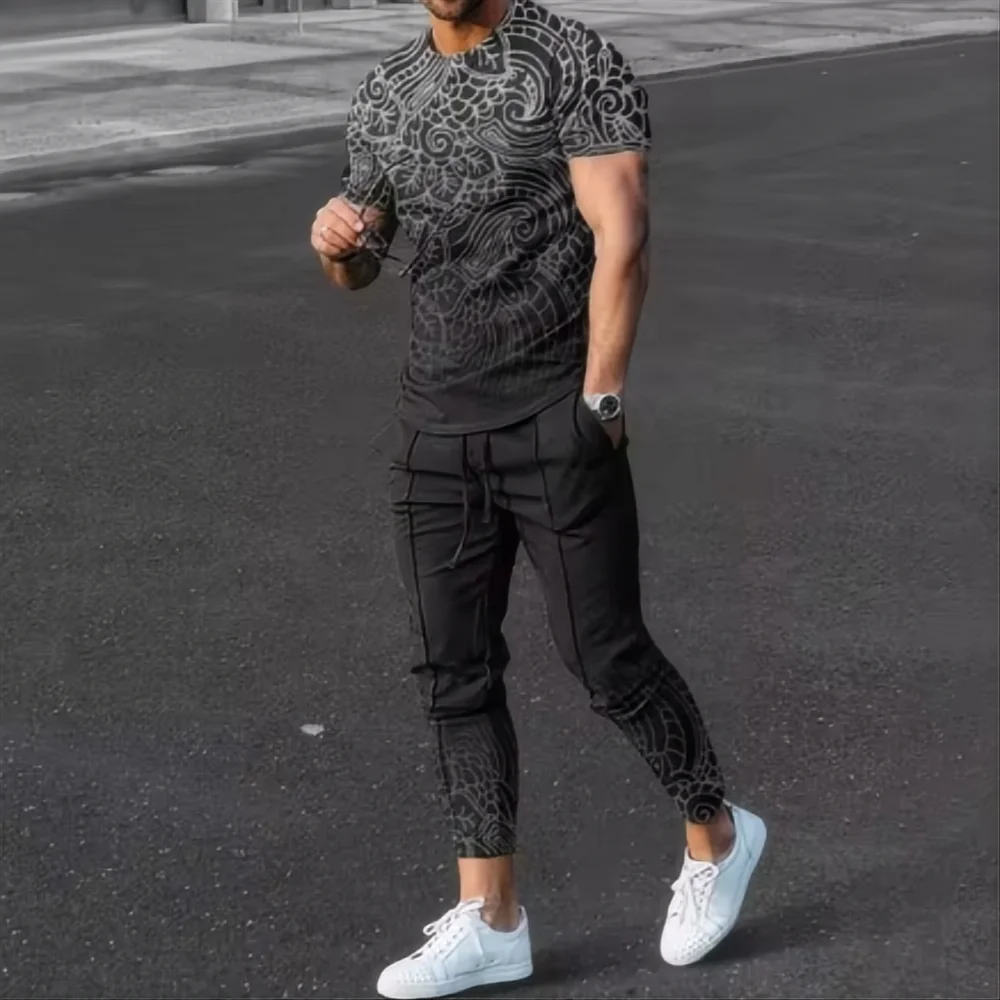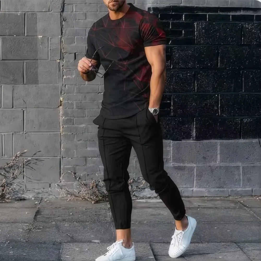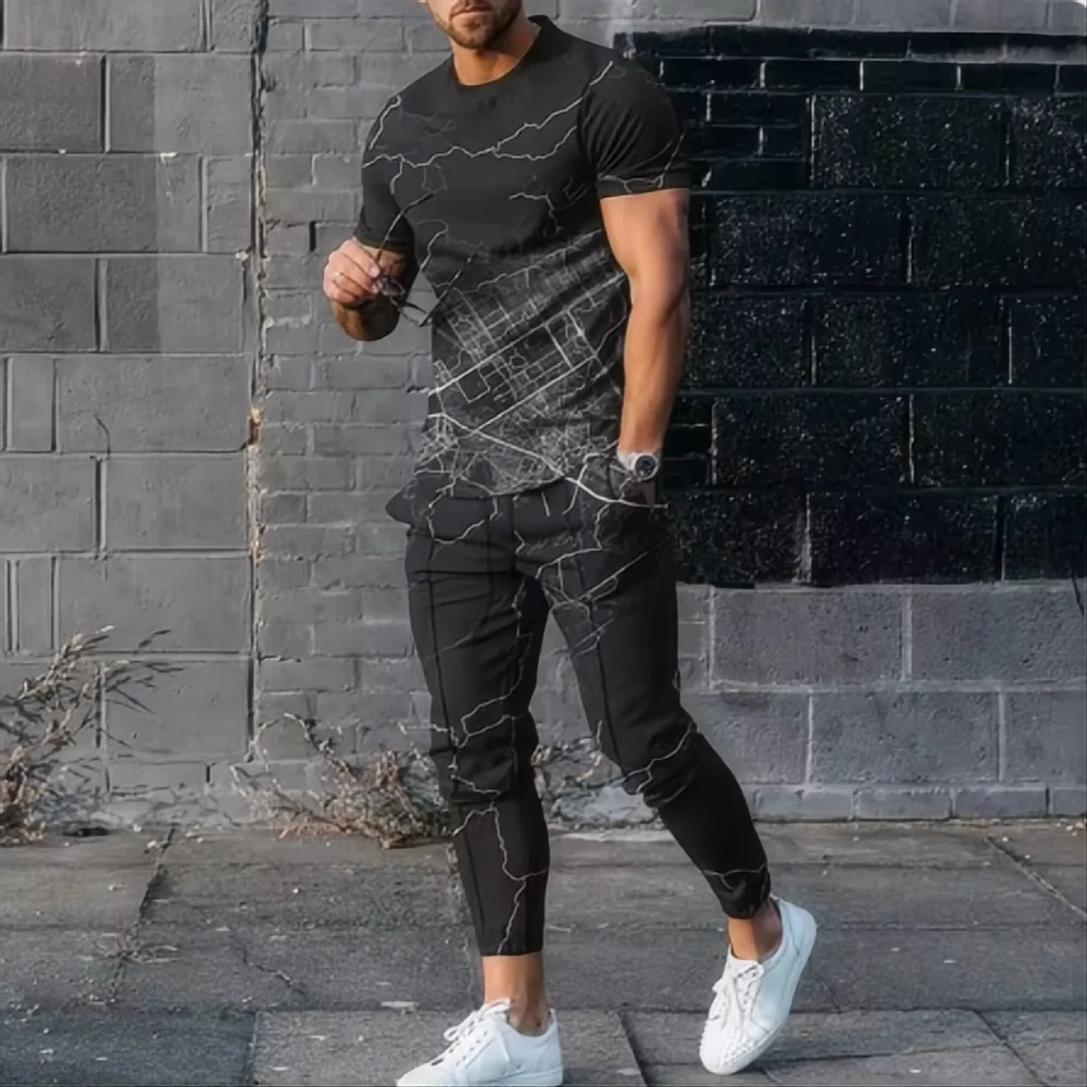Make a bold statement with this summer men’s 2-piece sportswear set, featuring an abstract gradient 3D printed T-shirt and matching pants. Designed for shopping, relaxing, or casual streetwear, this oversized suit combines comfort with standout style. Crafted from lightweight knit polyester with a soft feel and breathable fit, the elastic waist pants and short-sleeve tee offer all-day ease for spring and summer outings.