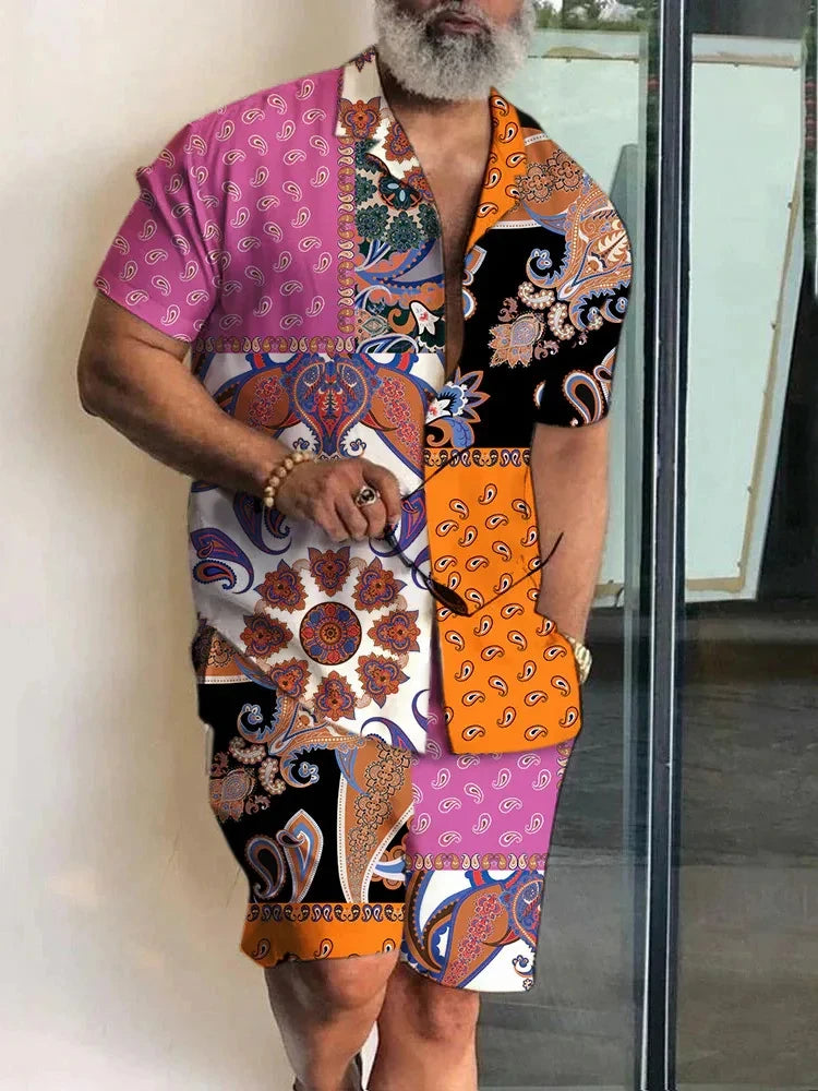 Travel in style with this YEAE men's summer shirt set, designed for beachside getaways and tropical adventures. Featuring a printed short-sleeve notched collar shirt with a single-breasted closure and matching drawstring shorts, this 2-piece set offers lightweight comfort and effortless charm. Crafted from breathable polyester, it’s perfect for spring and summer vacations, blending relaxed beach style with refined vacation-ready flair.