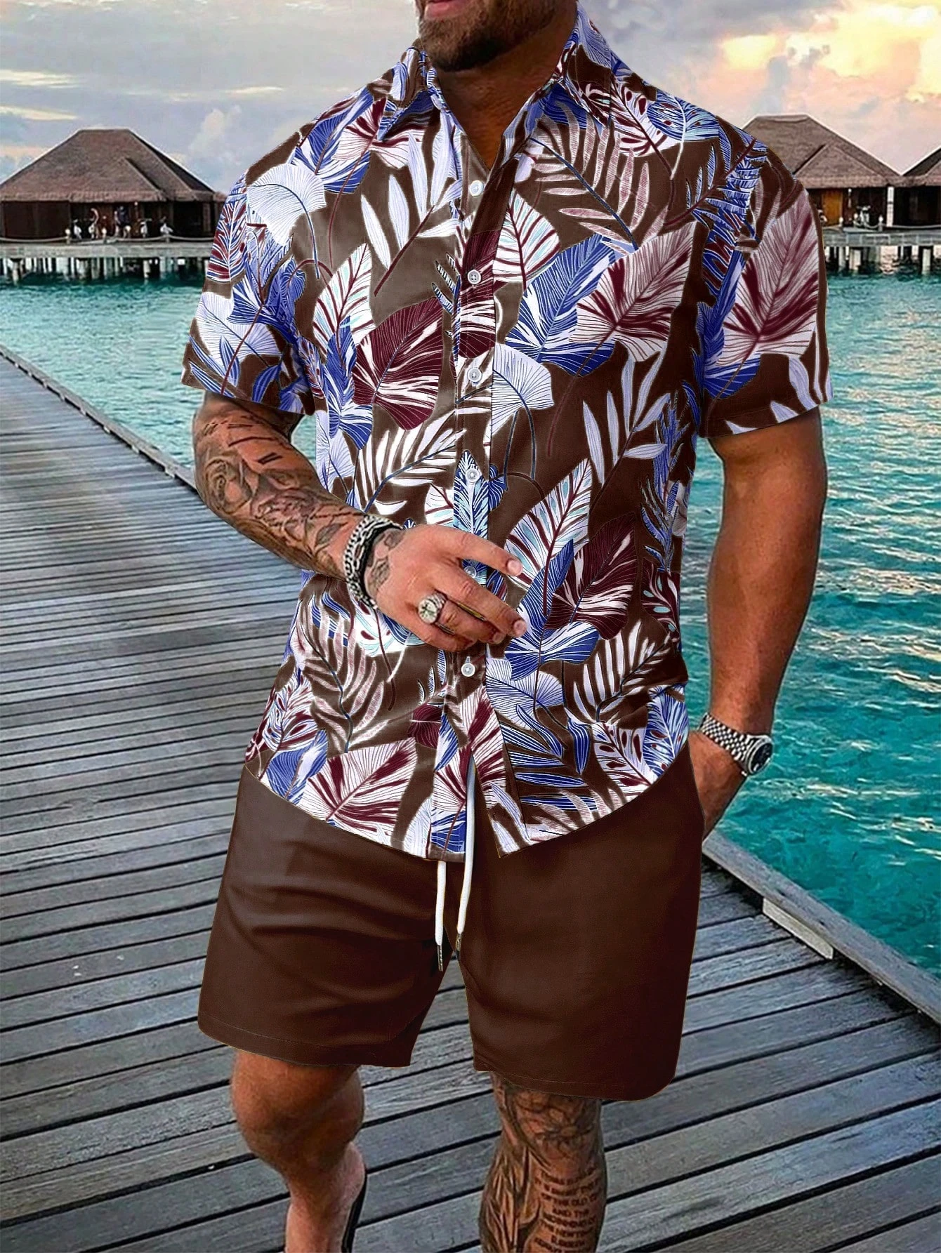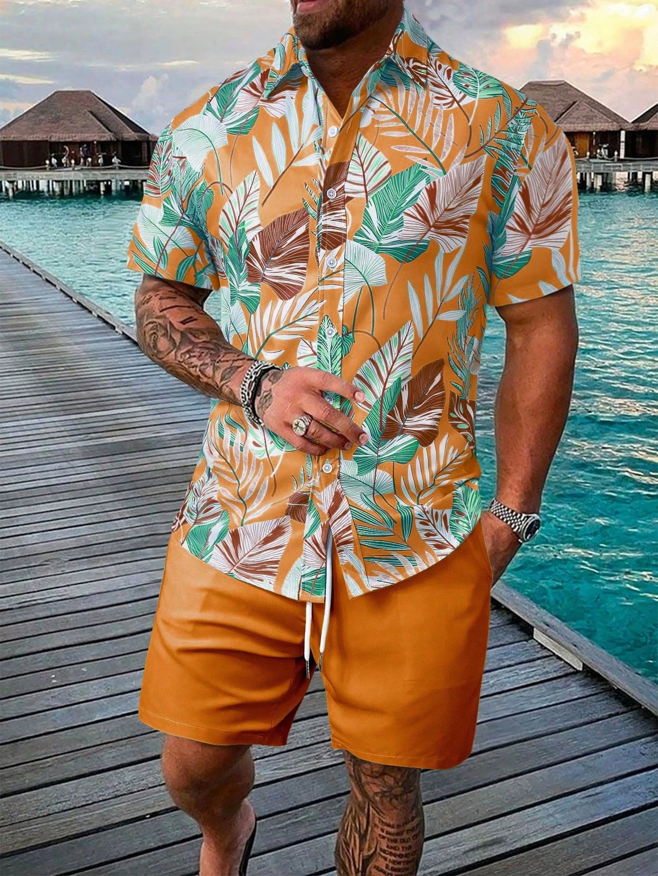 Summer Palm Tree 3D Print Men Shirts Beach Shorts Sets Hawaiian Short Sleeve Shirt Shorts 2 PCS Hawaiian Suits Street Clothes