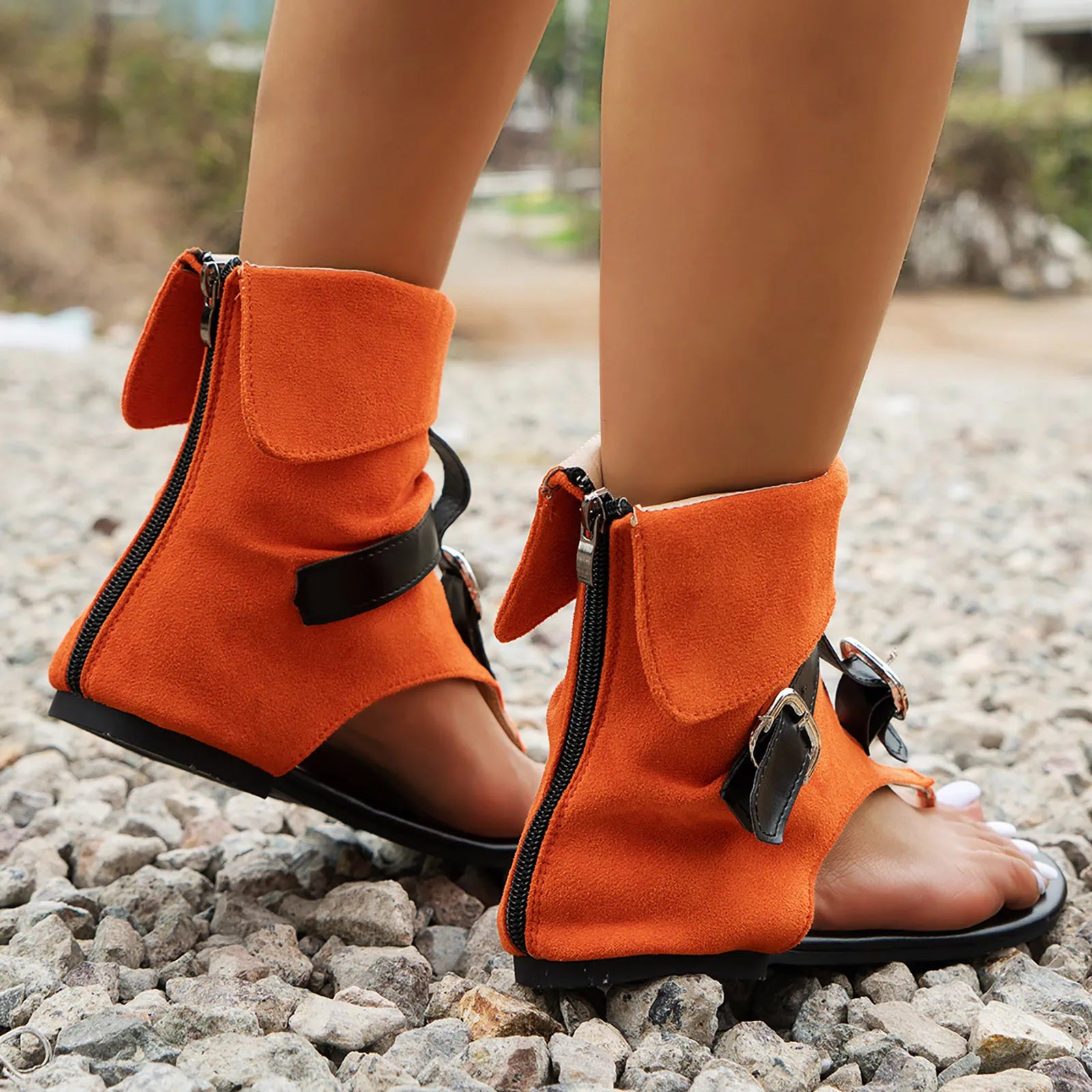 Ladies Summer Clip Toe Flat Roman Sandals Denim Belt Buckle Large Size High Top Herringbone Cool Boots Sandals